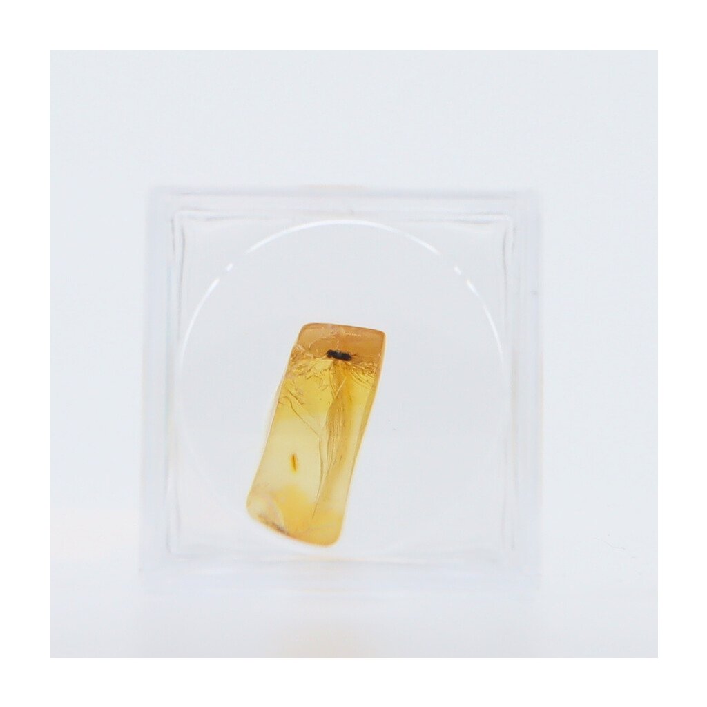Remember the scene in Jurassic Park with the mosquito trapped in amber? Just like that, this piece of fossilized tree resin preserved a real prehistoric insect—detailed, unique, and tens of millions of years old. A tiny fly became caught in the sticky resin, which nature sealed and fossilized so perfectly that it has survived through the ages.
