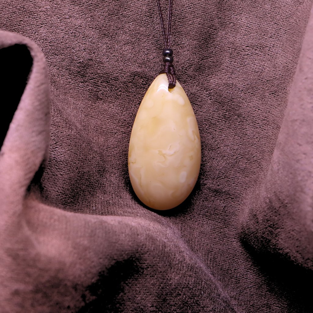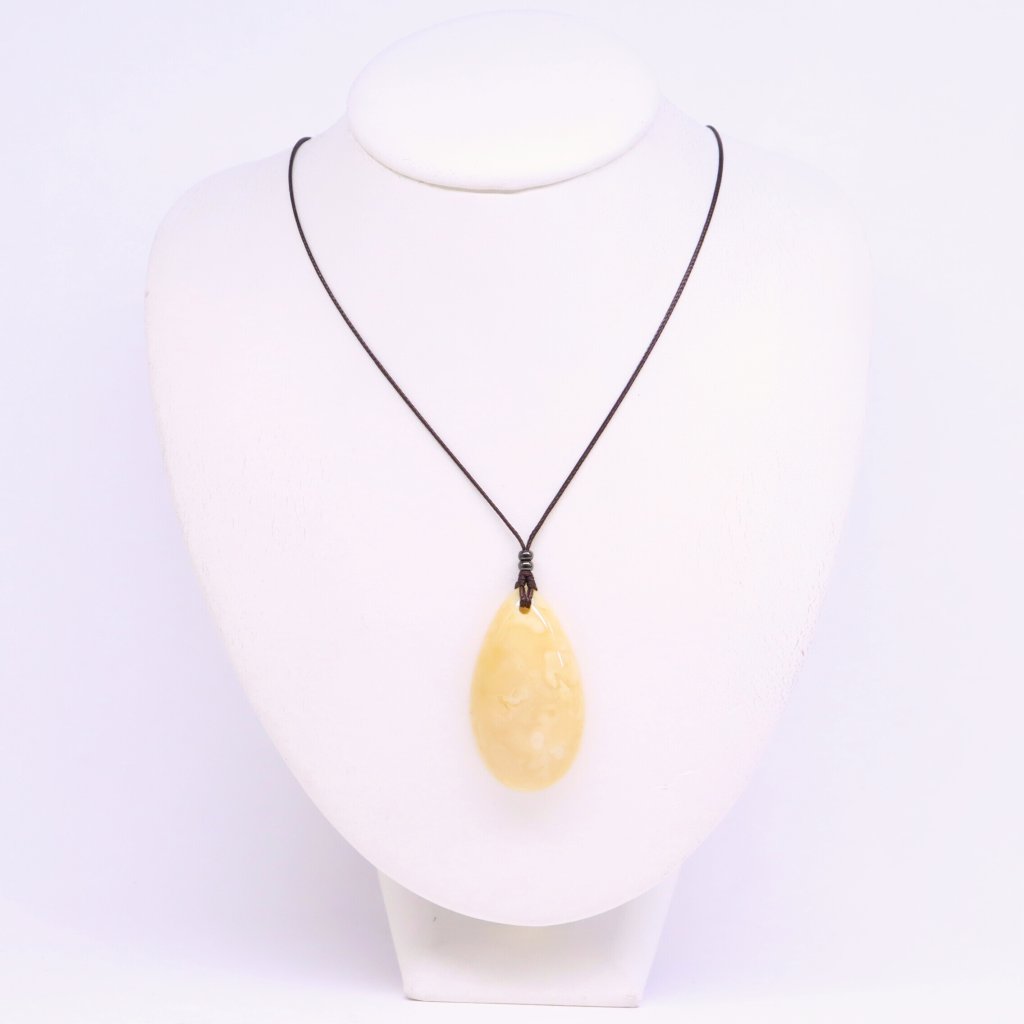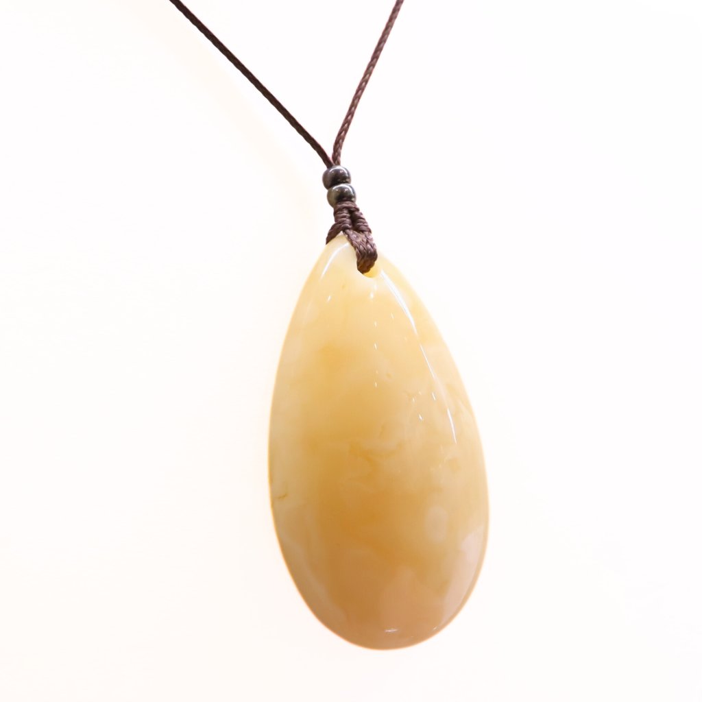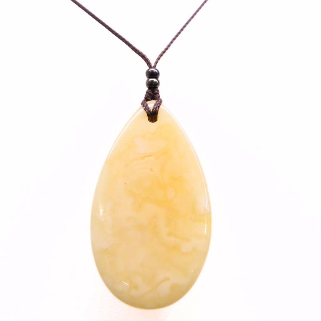 This pendant made of genuine Baltic amber on a nyloncord will not only adorn your outfit, but is also very pleasant to the touch. Its silky feel has a calming effect.