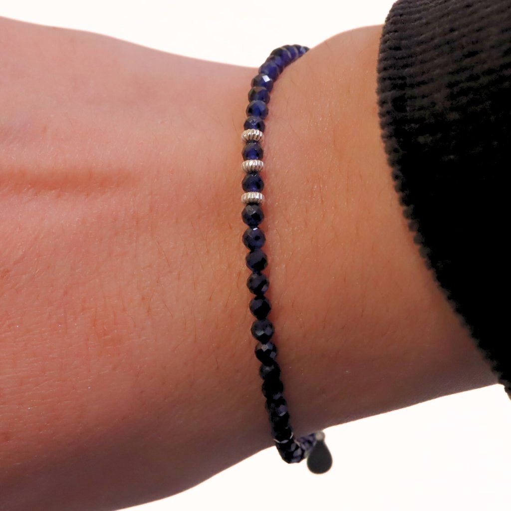 This delicate bracelet made of faceted sapphire beads is designed for comfortable everyday wear. It is lightweight, elegant, and pleasant on the wrist, adding a subtle touch of color and refinement without feeling excessive. It pairs easily with both casual and more polished outfits and works beautifully on its own or layered with other bracelets.