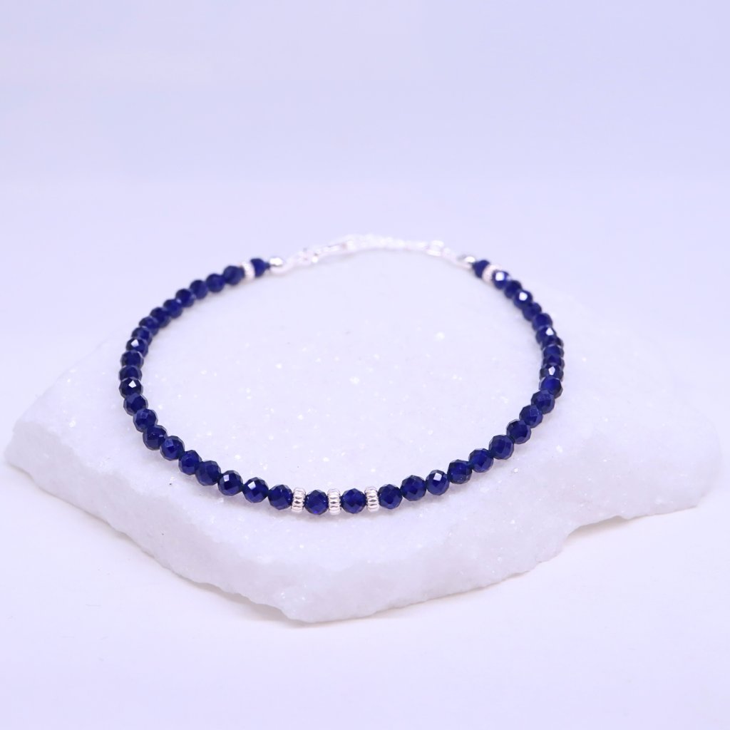 Sapphire is valued for its deep, rich tones and timeless character. Traditionally associated with wisdom, clarity, and inner balance, it is often seen as a stone that supports focus and confidence. Its understated beauty makes this bracelet suitable for women who appreciate refined, meaningful jewelry without unnecessary embellishment.