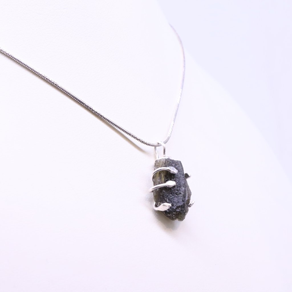 Moldavite pendant is not only a beautiful jewel. It is exceptional also because of its rare origin. It is a gemstone that was formed 15 million years ago when a huge meteorite hit the Earth. This unique stone is prized for its mysterious green colour and specific striations, called sculpting, which make it an art piece of the nature.