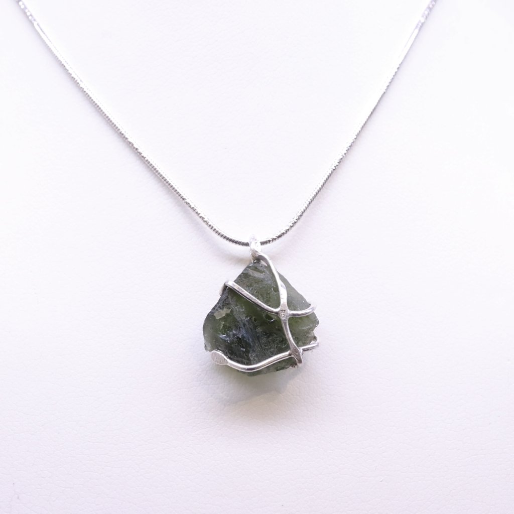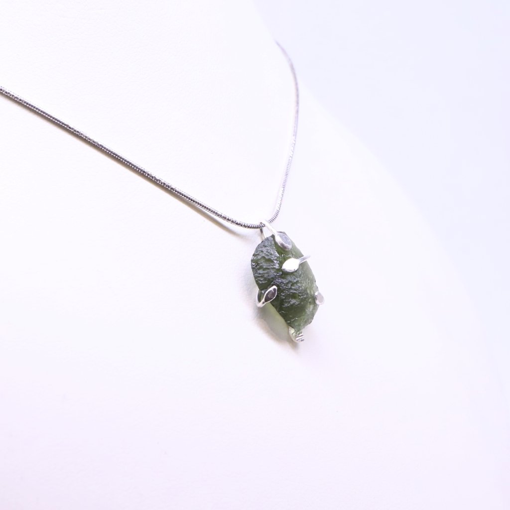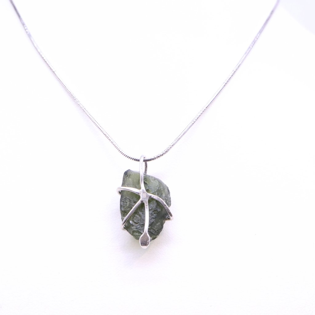 Moldavite pendant is not only a beautiful jewel. It is exceptional also because of its rare origin. It is a gemstone that was formed 15 million years ago when a huge meteorite hit the Earth. This unique stone is prized for its mysterious green colour and specific striations, called sculpting, which make it an art piece of the nature.