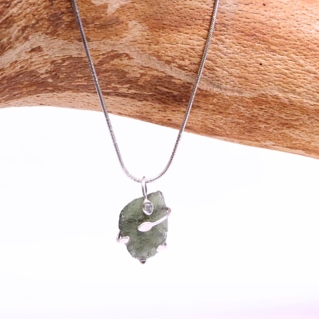 This minimalist moldavite pendant combined with silver (Ag 925/1000) is an elegant choice for everyday wear.