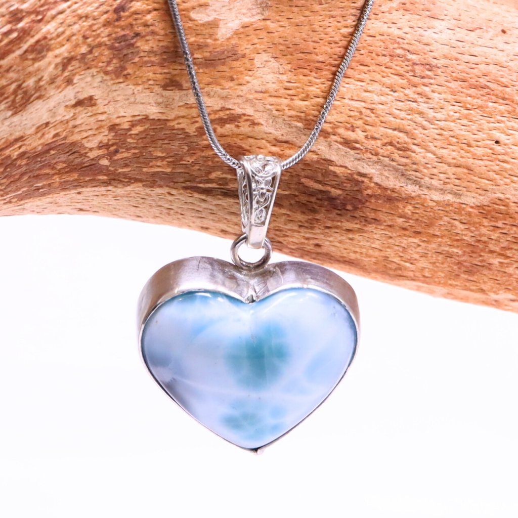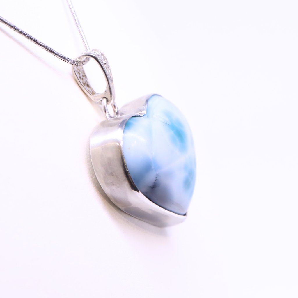 This silver pendant with a heart-shaped larimar, the stone of calm and the sea, will transport you every day to a place where time stands still and summer reigns all year round. Express your affection with this piece of jewelry.