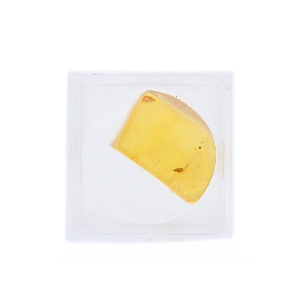 Jantar dodáváme v plastové krabičce se vsazenou lupou pro snadnější pozorování. Je připevněn čirým lepidlem ke dnu krabičky, aby se s ním snadno manipulovalo a zároveň byl dobře viditelný ze všech stran.