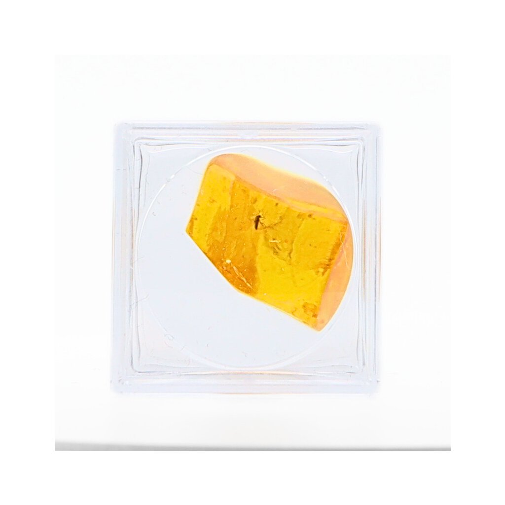 Jantar dodáváme v plastové krabičce se vsazenou lupou pro snadnější pozorování. Je připevněn čirým lepidlem ke dnu krabičky, aby se s ním snadno manipulovalo a zároveň byl dobře viditelný ze všech stran.