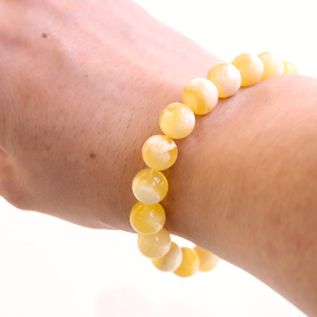Náramek z pravého baltského jantaru je lehký a na dotek velice příjemný. Je navlečený na elastické lykře, která se nevytahuje a vydrží dlouho.