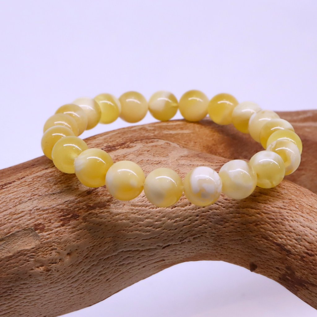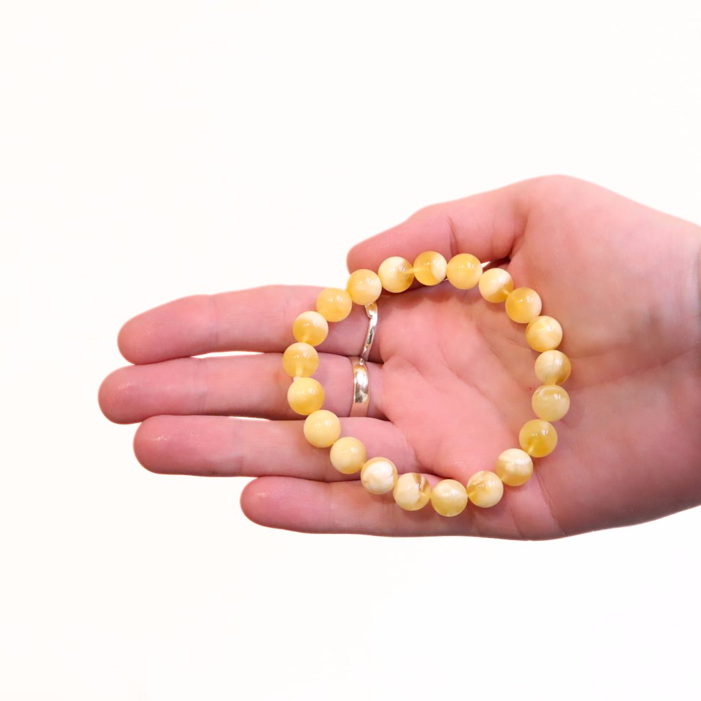 Jednoduchý a přesto nevšední náramek z kuliček je vybroušený z přírodního baltského jantaru.