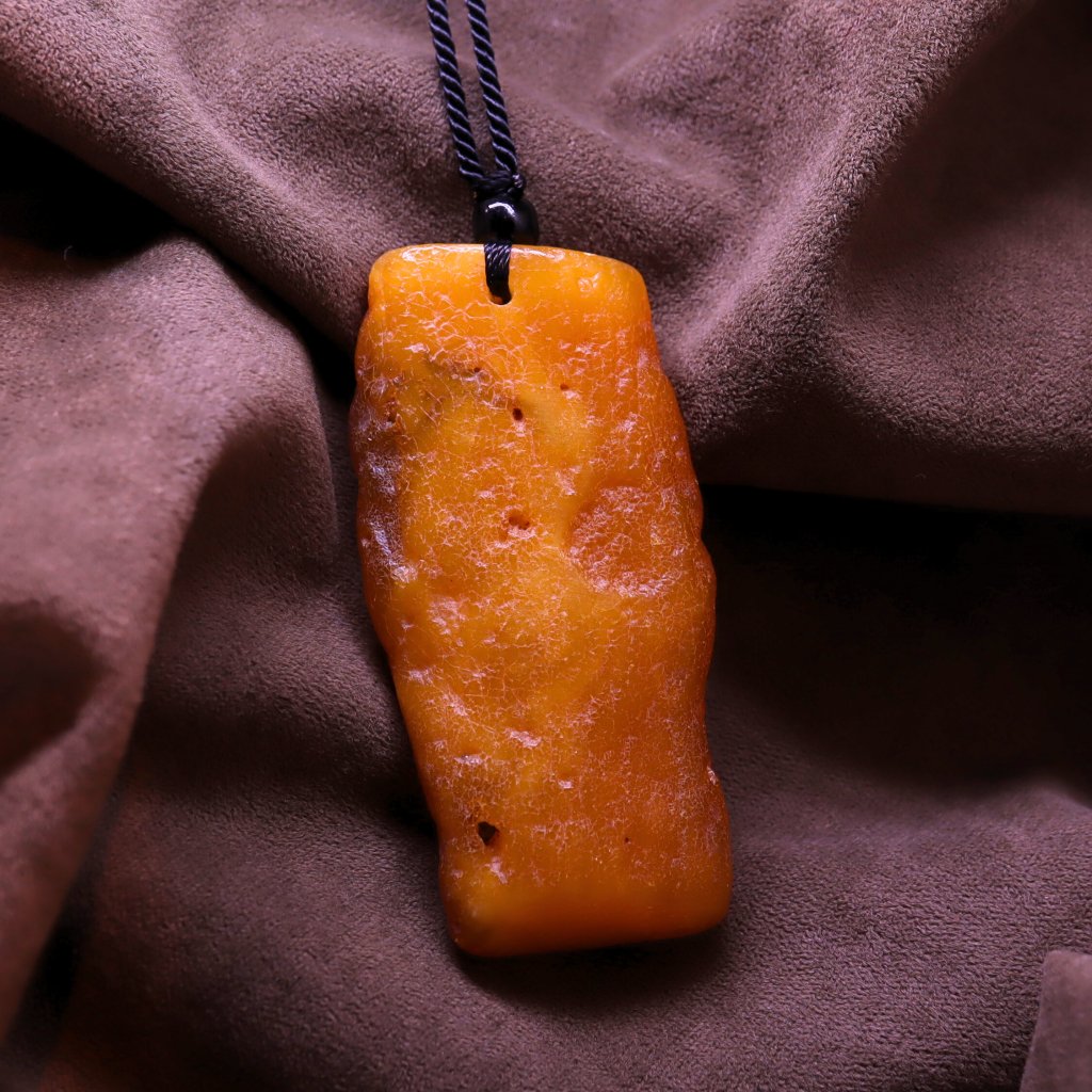 Jantar, který nebyl přetvořen, jen jemně upraven. Tento přívěsek vznikl ze surového baltského jantaru, jehož tvar i část kůry jsme ponechali záměrně. Povrch je přirozeně drsnější a barva má typický teplý jantarový odstín, který působí klidně a přirozeně.