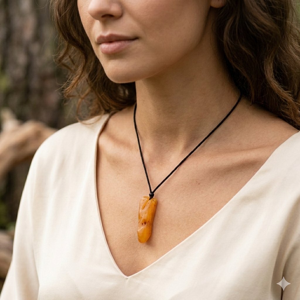 Má typickou medově jantarovou barvu, kterou si většina z nás pod slovem „jantar“ představí. Je to šperk pro ty, kteří chtějí cítit opravdovost materiálu – jeho strukturu, historii i přirozenou krásu bez zbytečných zásahů. Vhodný je pro ženy i muže.
