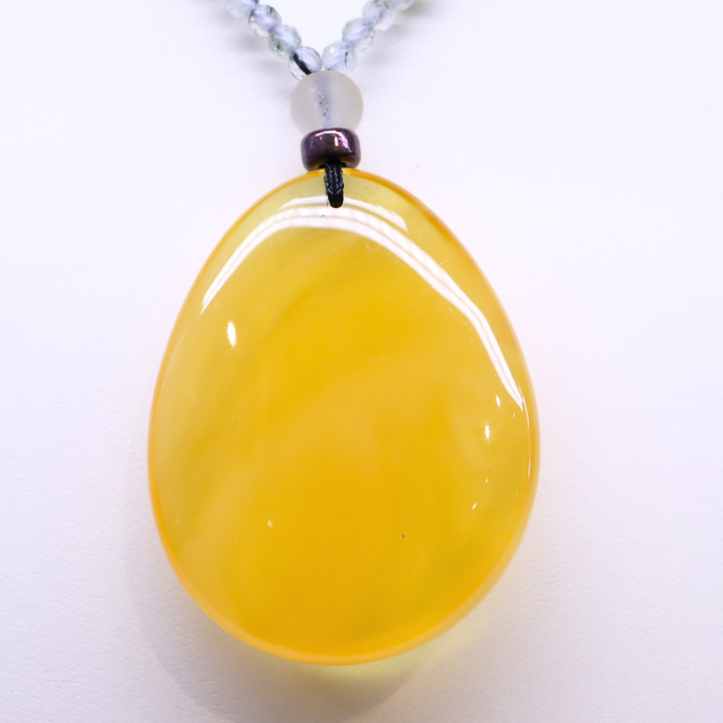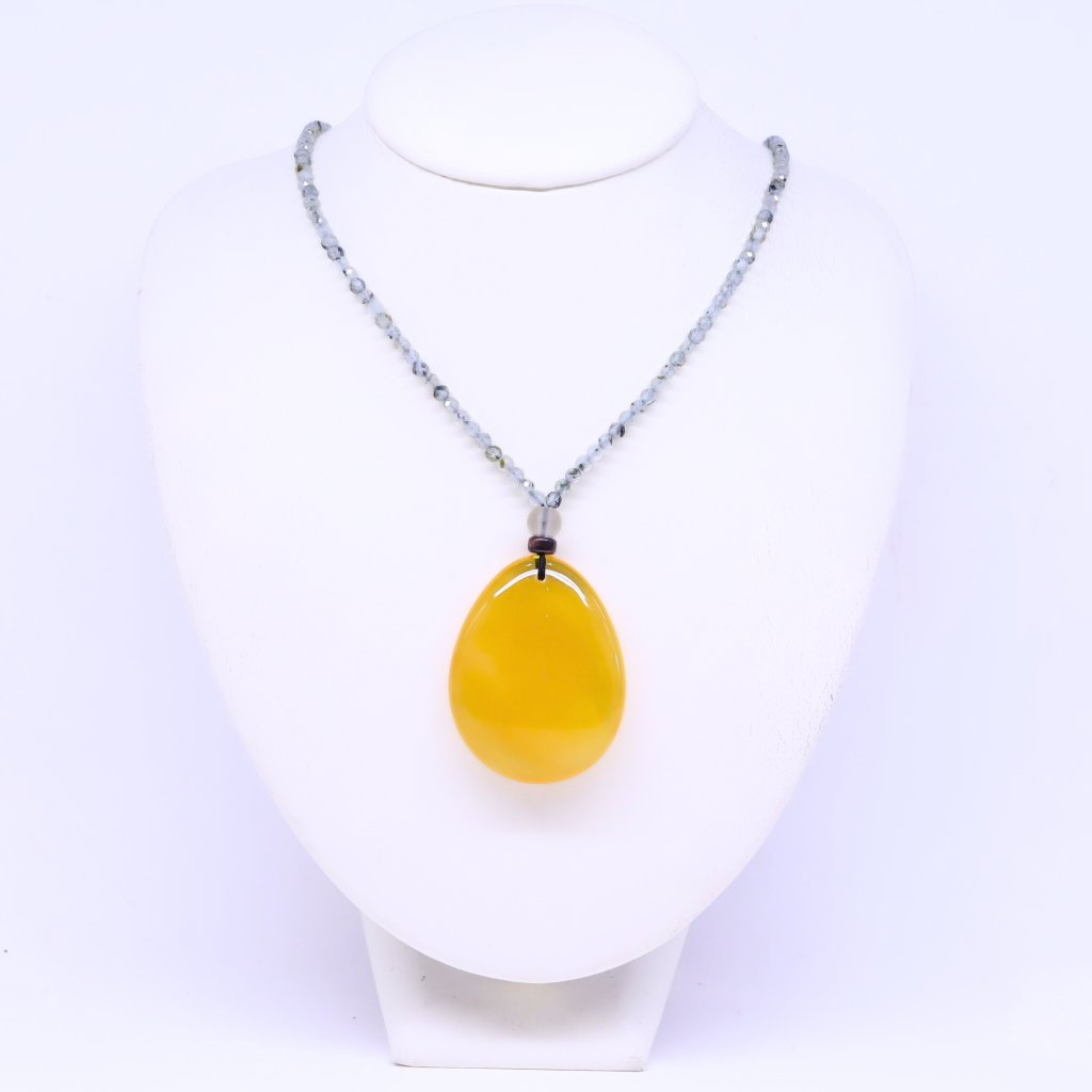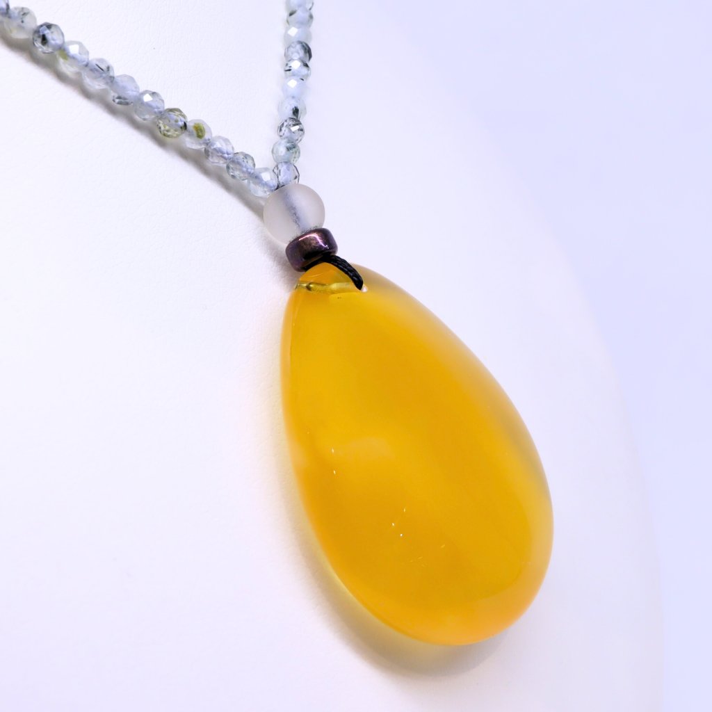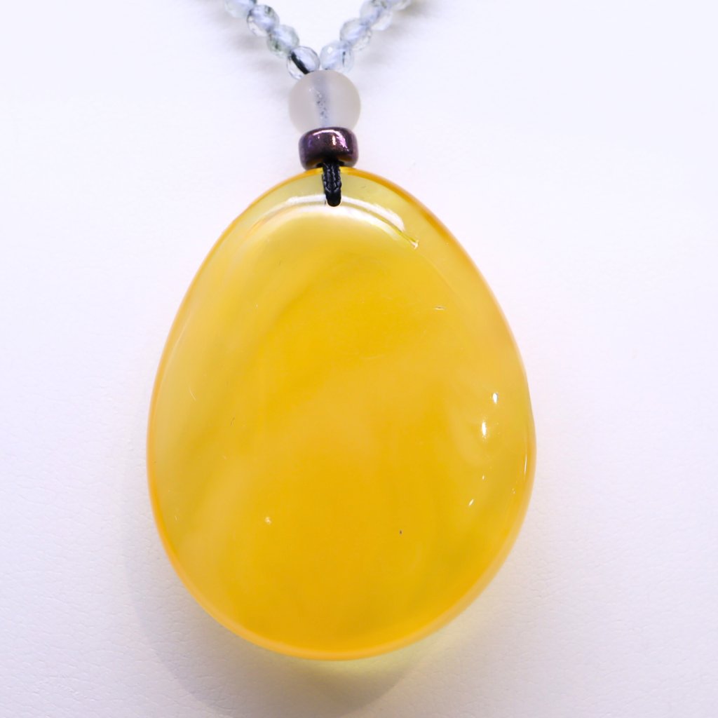 Představte si ten pocit, když nosíte u srdce magický kámen, který v sobě skrývá sílu slunce a nebes. Takový je právě tento přívěsek z baltského jantaru v top kvalitě na náhrdelníku z korálků z prehnitu. Posuvné vázání vám umožní přizpůsobit si délku podle potřeby.