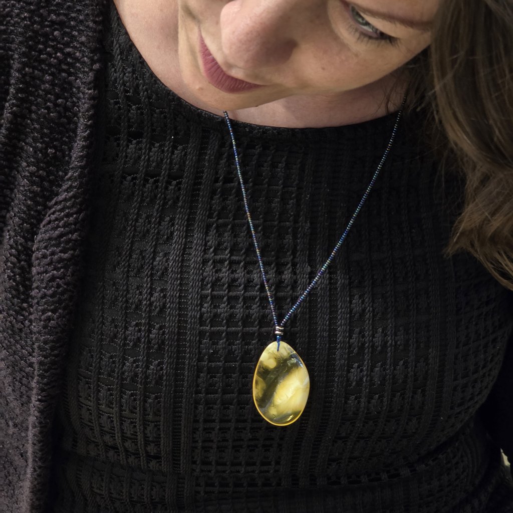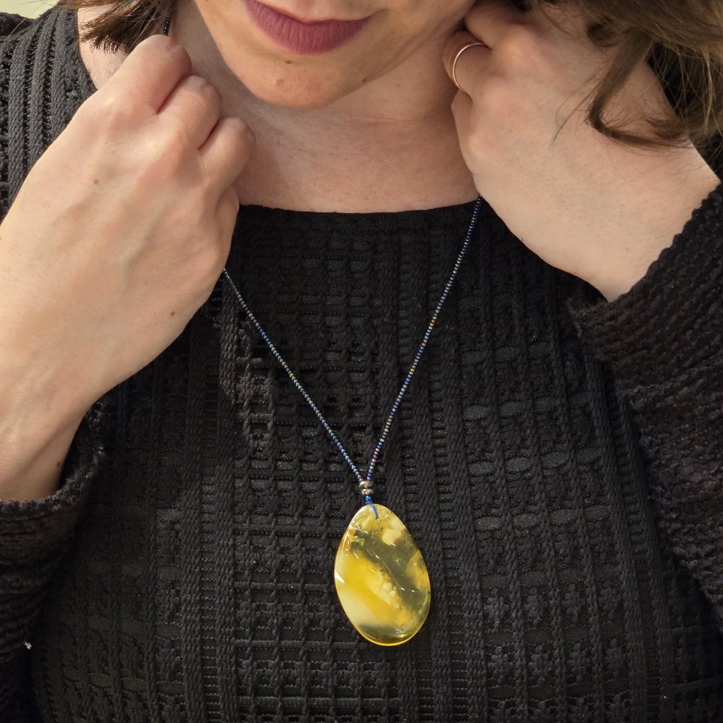 Pokud si rádi hrajete s přívěskem na krku, hedvábný dotek jantaru vás bude uklidňovat. Jantar je lehký a příjemně hřejivý. Přívěsek z pravého baltského jantaru je doplněný náhrdelníkem ze skleněných korálků Preciosa. Je vhodný pro ženy.