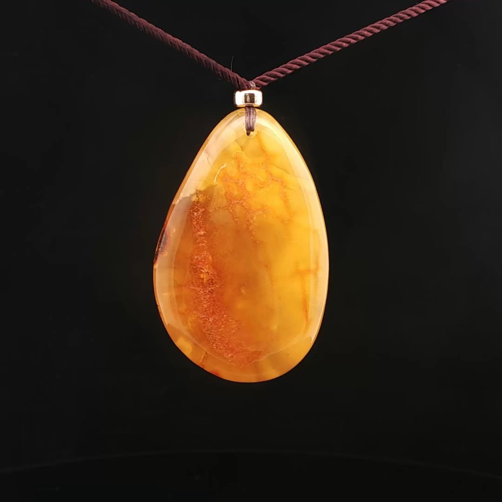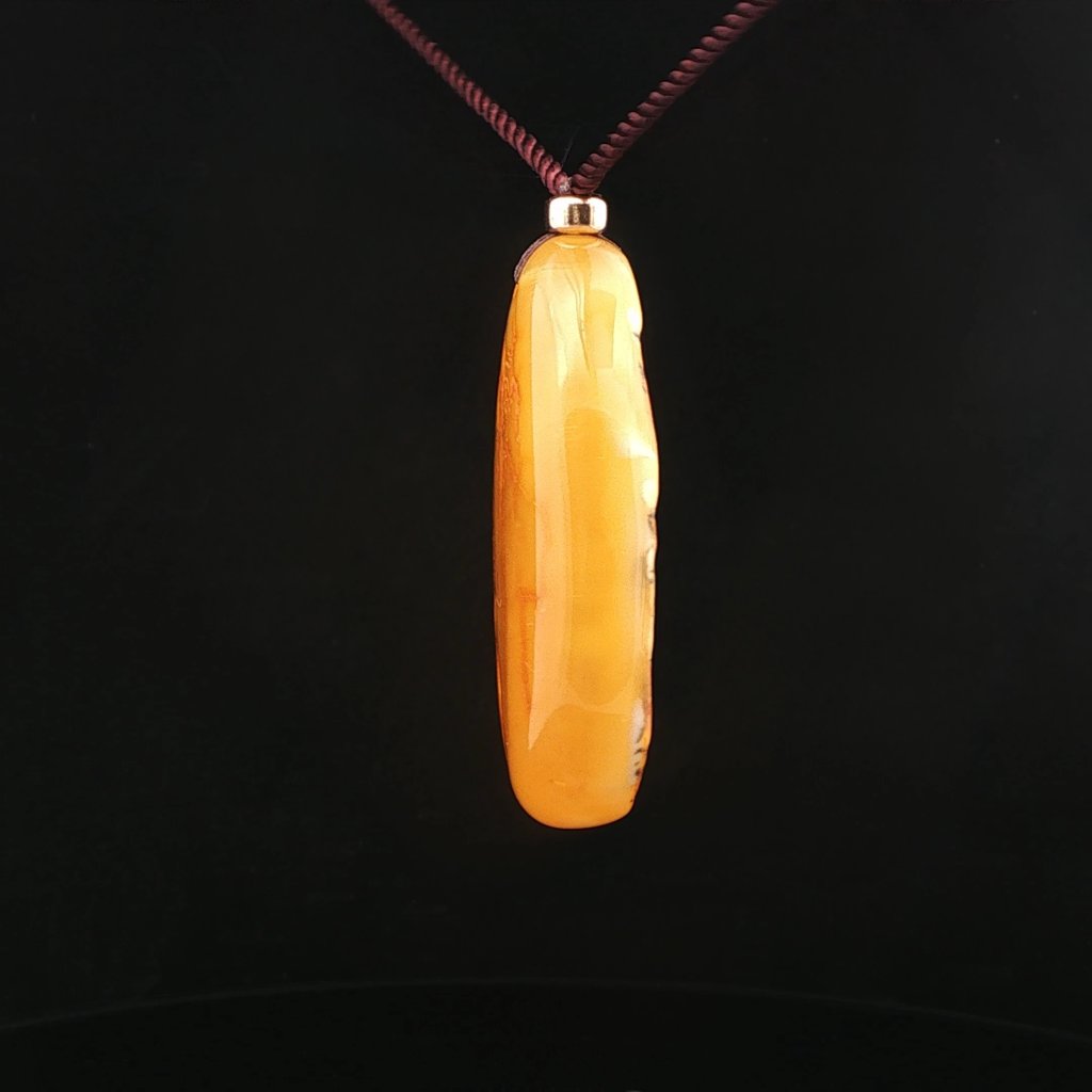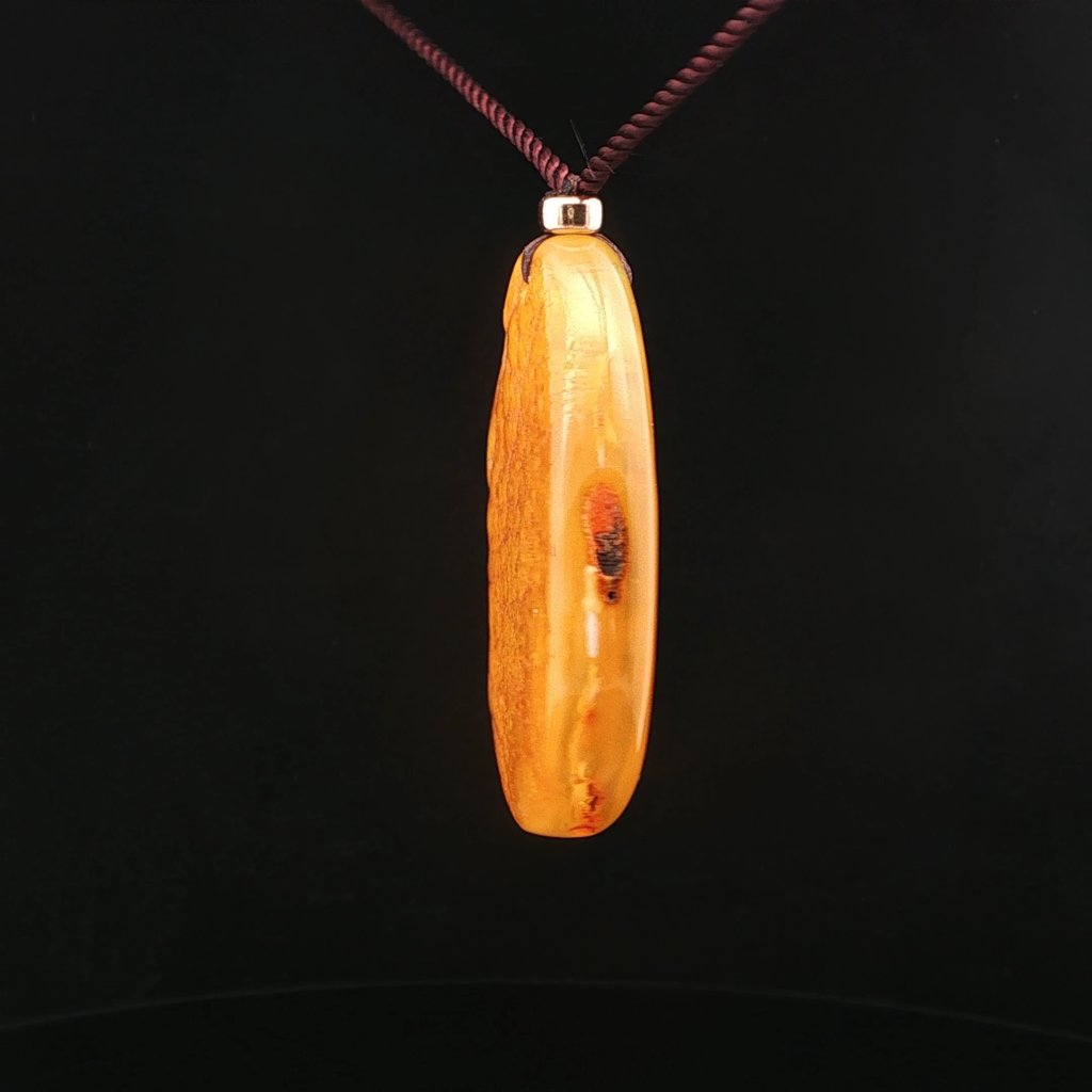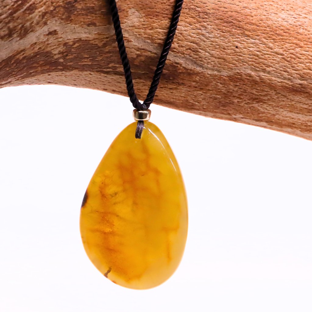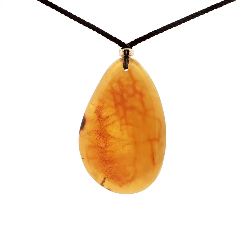 Přívěsek na zdobné šňůrce je z pravého baltského jantaru. O jantaru se říká, že když je v kontaktu s pokožkou, vyživuje svého majitele a naopak. Je to šperk, který je s Vámi v dobrém i zlém jako věrný přítel. Zlehka obroušená a vyleštěná přírodní kůra jantaru dává přívěsku typickou barvu dobře vyzrálé whisky.