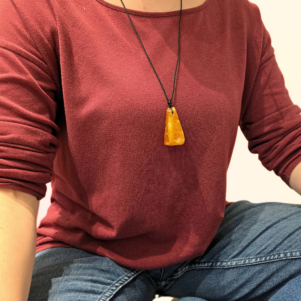 Jednoduchý jantarový přívěsek, který v sobě nese kus pradávného světa. Díky svému tvaru působí moderně a nadčasově zároveň. Hodí se pro ženy i muže, kteří ocení sílu přírody a příběhy ukryté v čase.