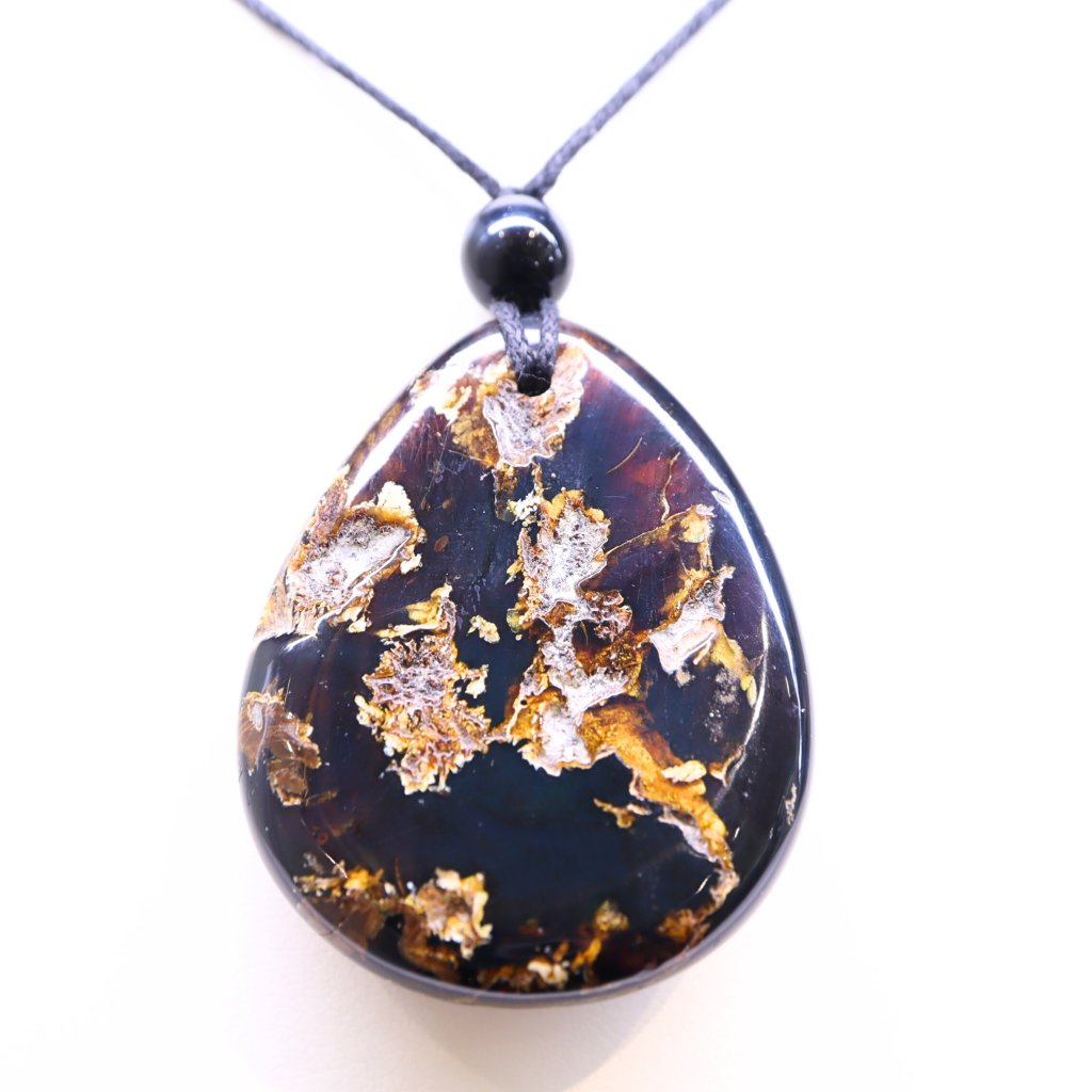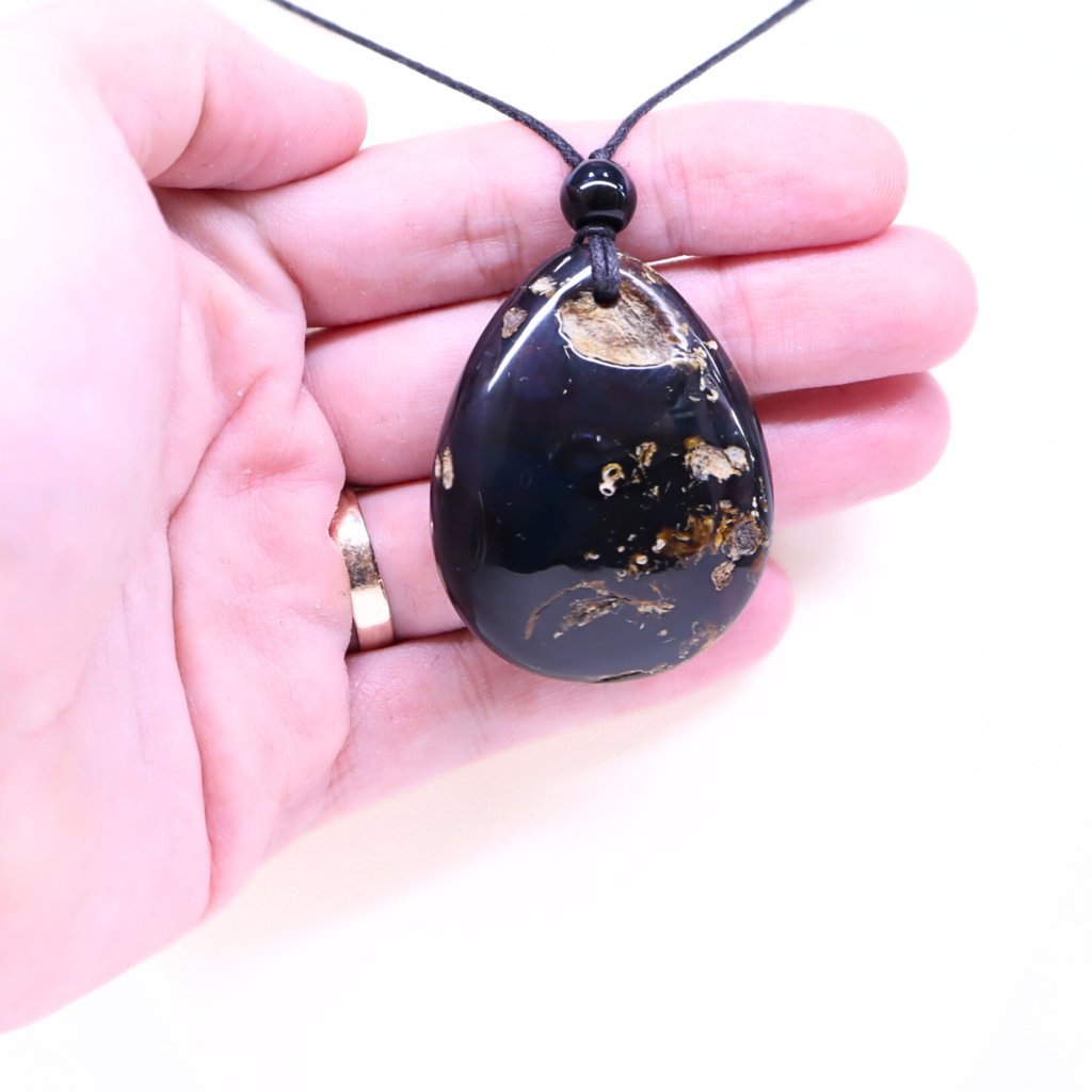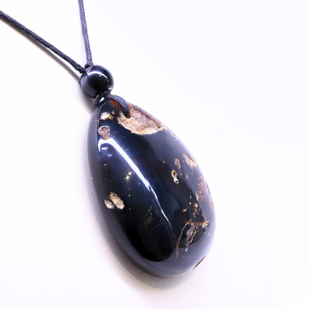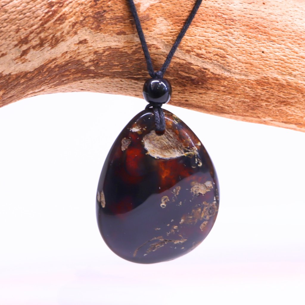 Přívěsek na šňůrce s posuvným vázáním je z pravého dominikánského jantaru. O jantaru se říká, že když je v kontaktu s pokožkou, vyživuje svého majitele a naopak. Je to šperk, který je s Vámi v dobrém i zlém jako věrný přítel.