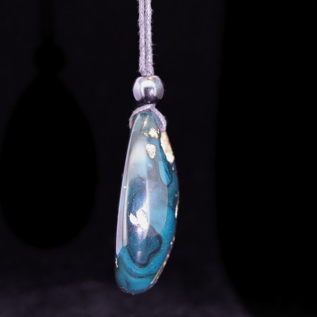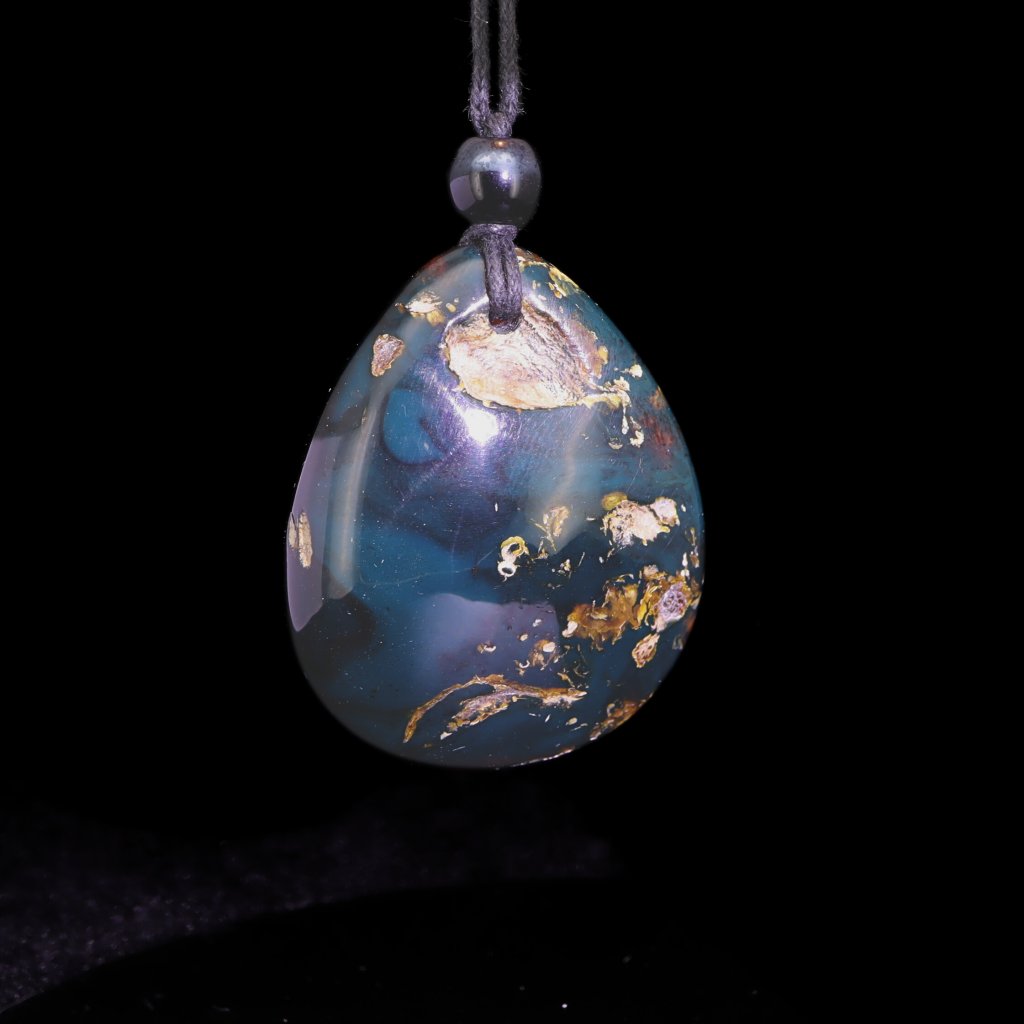 Přívěsek má inkluze. Na intenzivním světle nebo na sluníčku má sytě modrou fluorescenci. Magický kus přírody na Vašem krku.