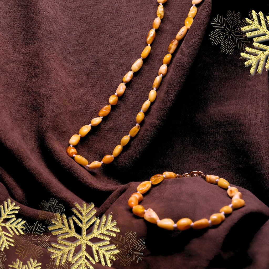 Náhrdelník i náramek, který obdržíte, se může odstínem barvy a kresbou jantarových nugetek mírně lišit. U přírodního jantaru totiž nikdy nenajdete dva stejné kousky.