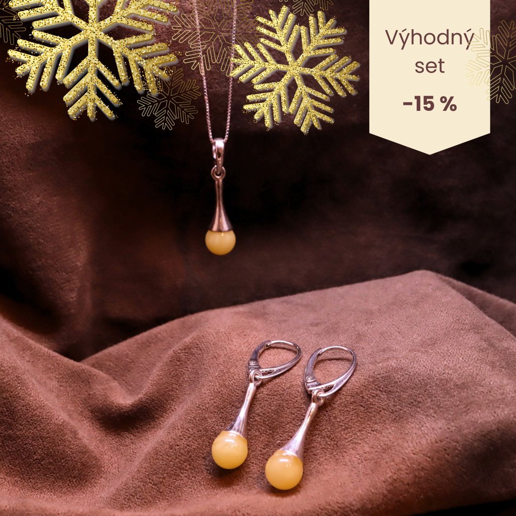 Tento stříbrný set s jantarovými kuličkami spojují eleganci a přírodní krásu. Každá kulička je jedinečná s neobyčejnou kresbou. Tím set vynikne i v minimalistickém provedení a je ideální pro každodenní nošení. Jantar je odedávna ceněn pro své schopnosti zahánět negativitu, přinášet vnitřní klid a podporovat pocit tepla a bezpečí.