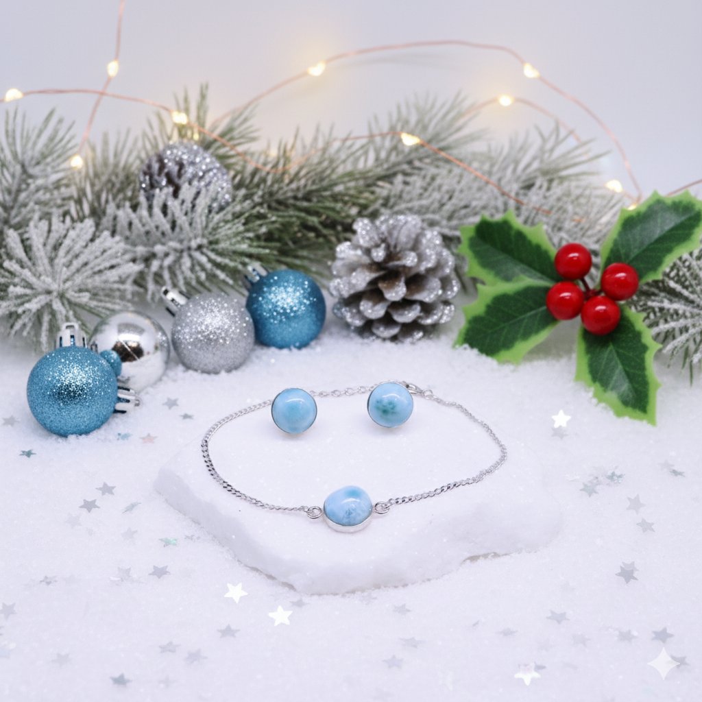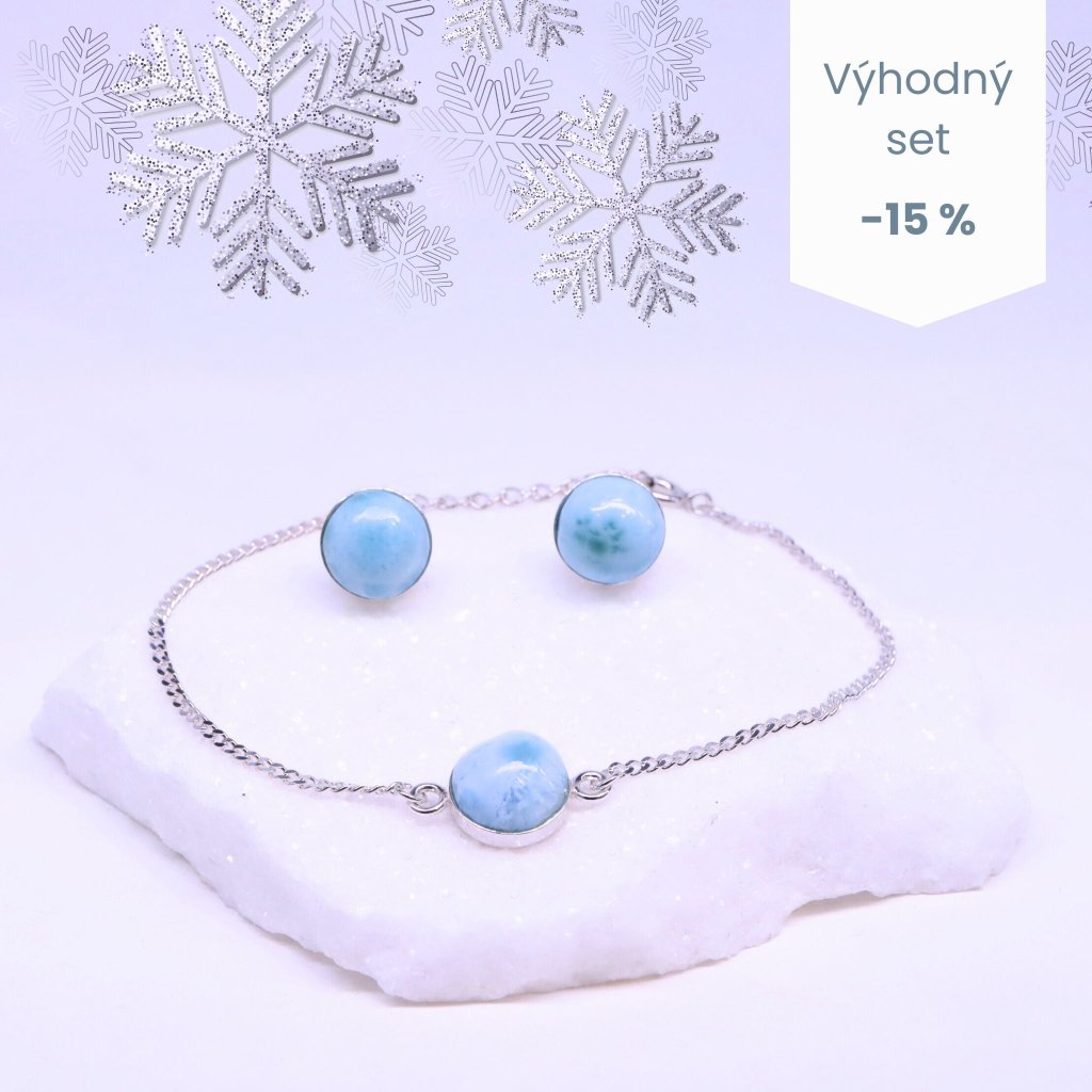 Stříbrný set - náramek a náušnice s larimarem v minimalistickém stylu vás rozzáří.