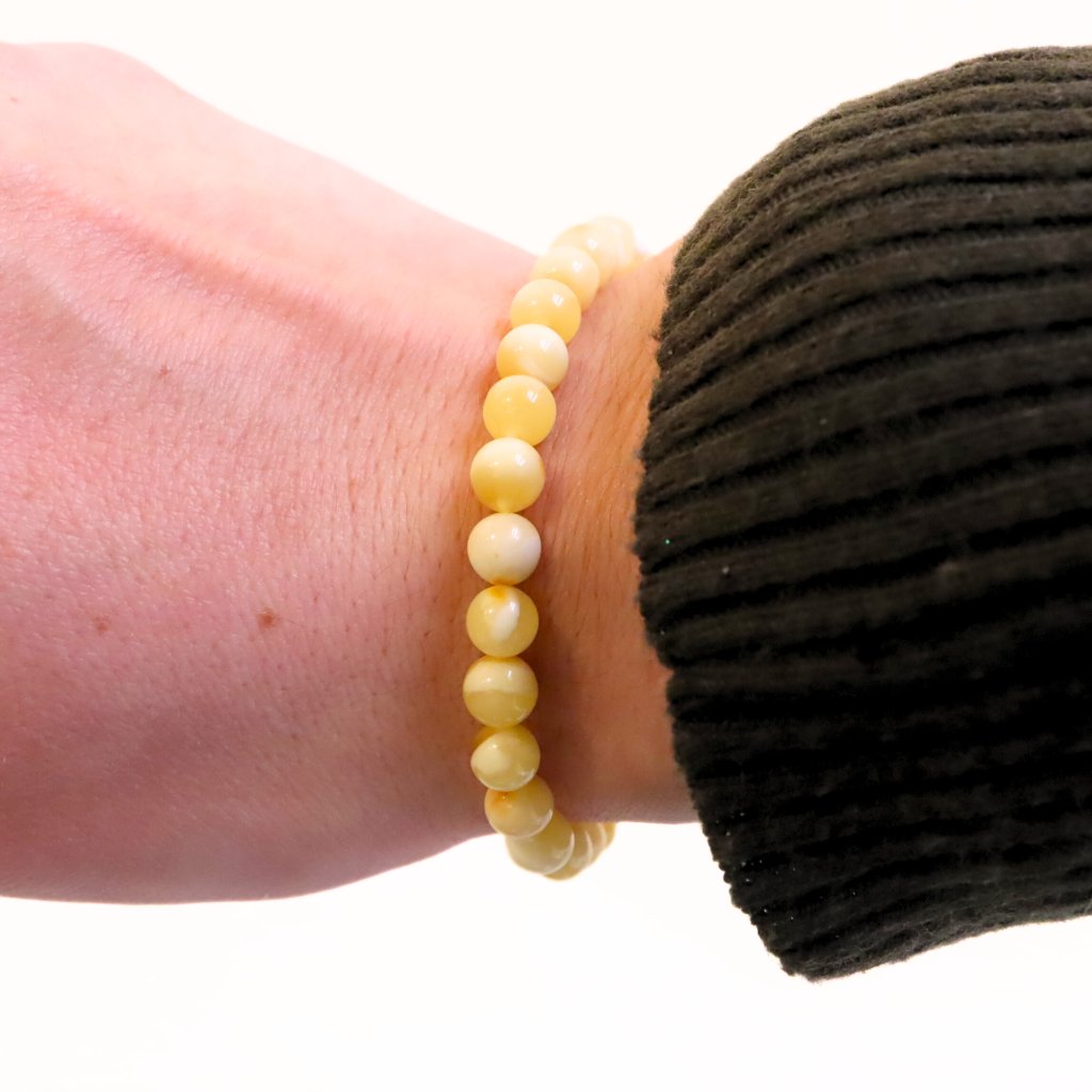 Jantar je lehký a nestudí jako některé minerály. Časem se jeho barva stane sytější a kresba korálků výraznější. Je to proto, že se jedná o drahokam organického původu, podobně jako například korál.