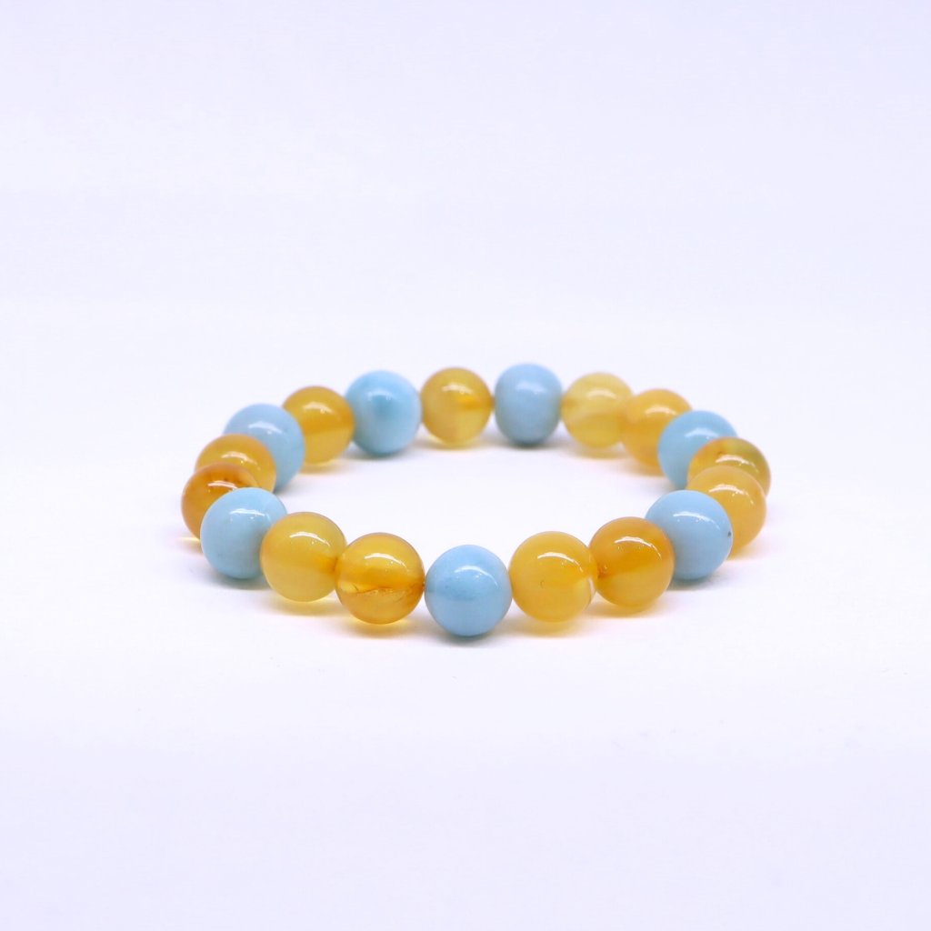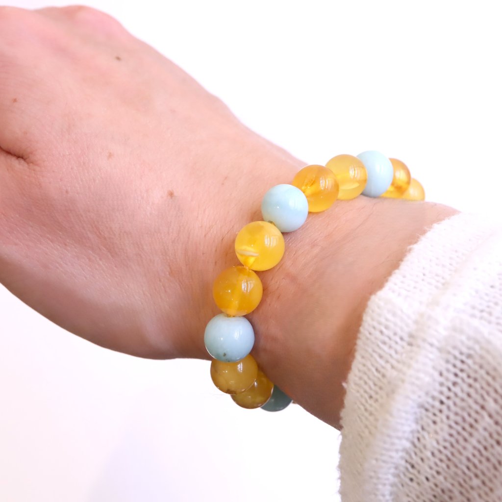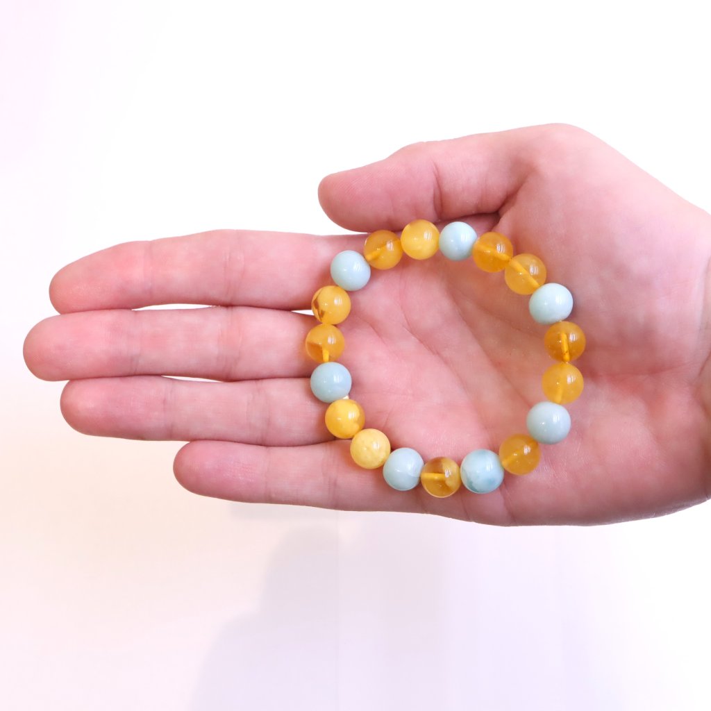 Náramky z kuliček patří mezi klasiku, která se nikdy neokouká. Larimárové korálky s jantarovými krásně ladí. Náramek vám připomene průzračné moře a hřejivé slunce.