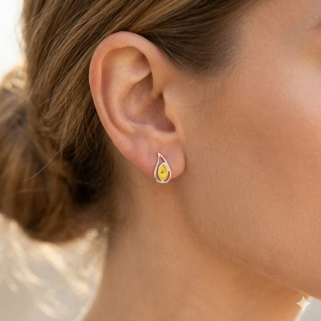 Elegantní a jemné náušnice z jantaru a stříbra Ag 925/1000.