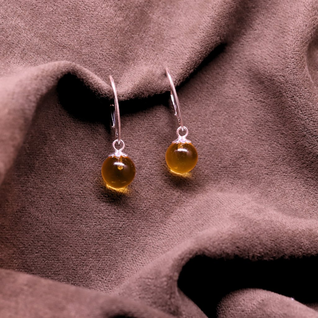 Jantarové náušnice se zapínáním Ag 925/1000. Kuličky jsou elegantní a decentní, hodí se pro každou příležitost.