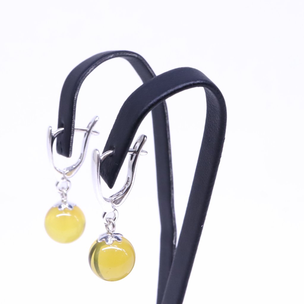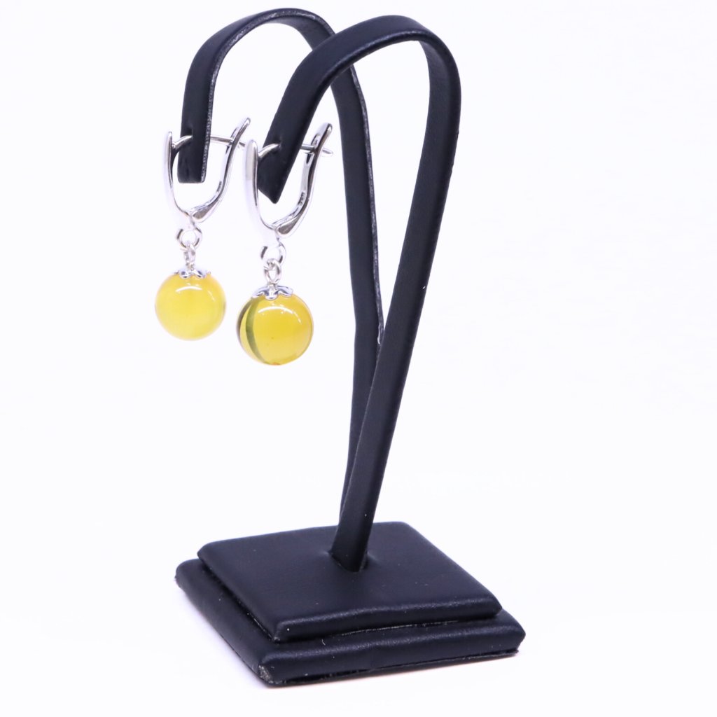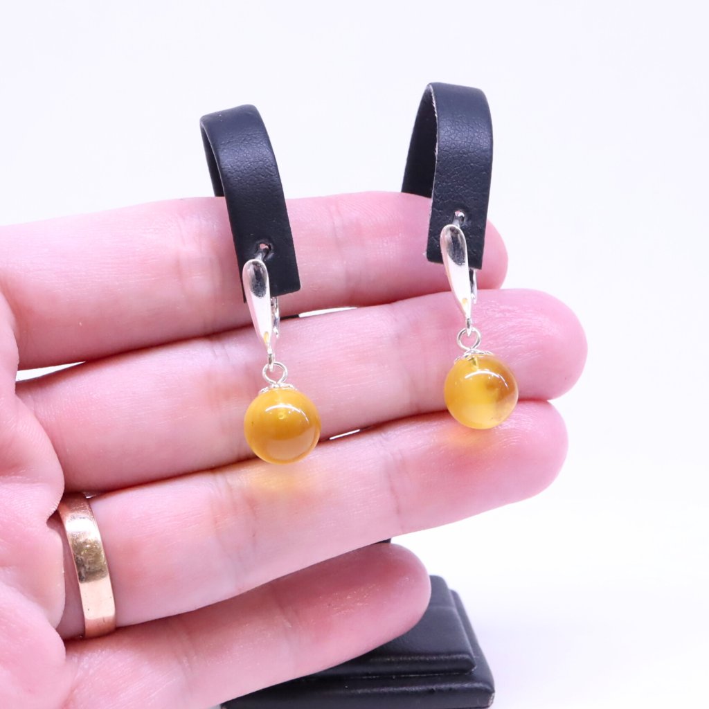 Visací náušnice s kuličkami z přírodního baltského jantaru pro každodenní nošení.