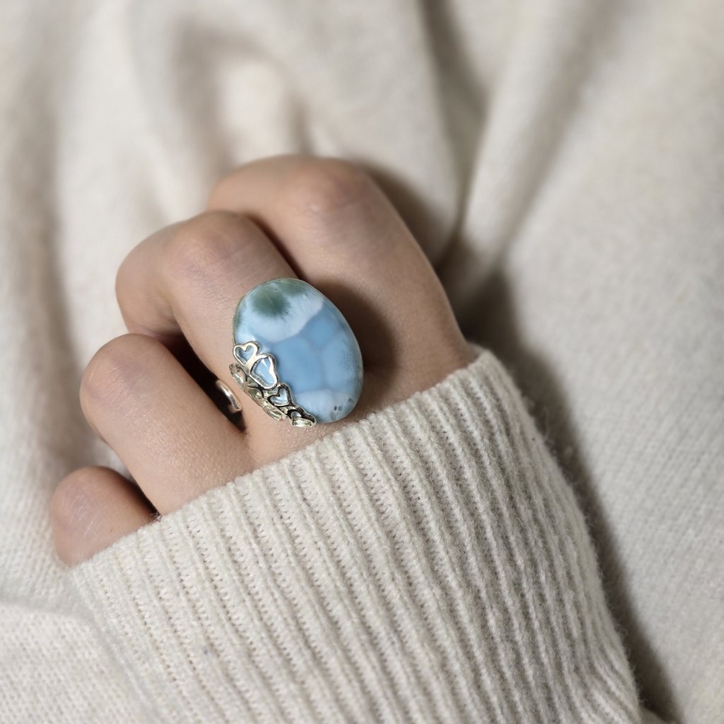 Stříbrný prsten s larimárem je vhodný pro každodenní nošení.