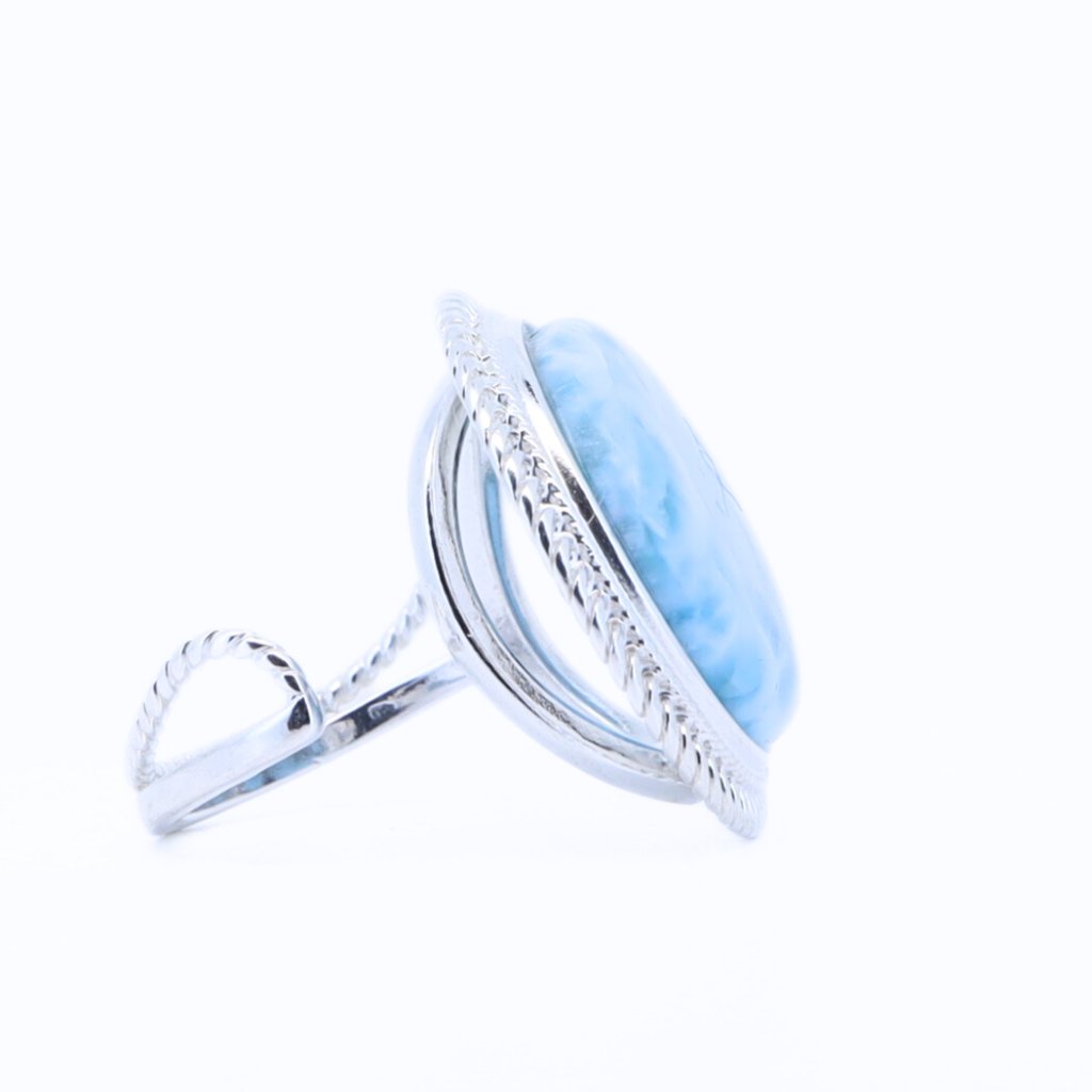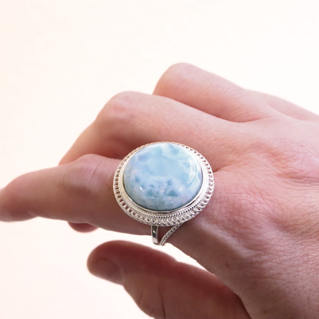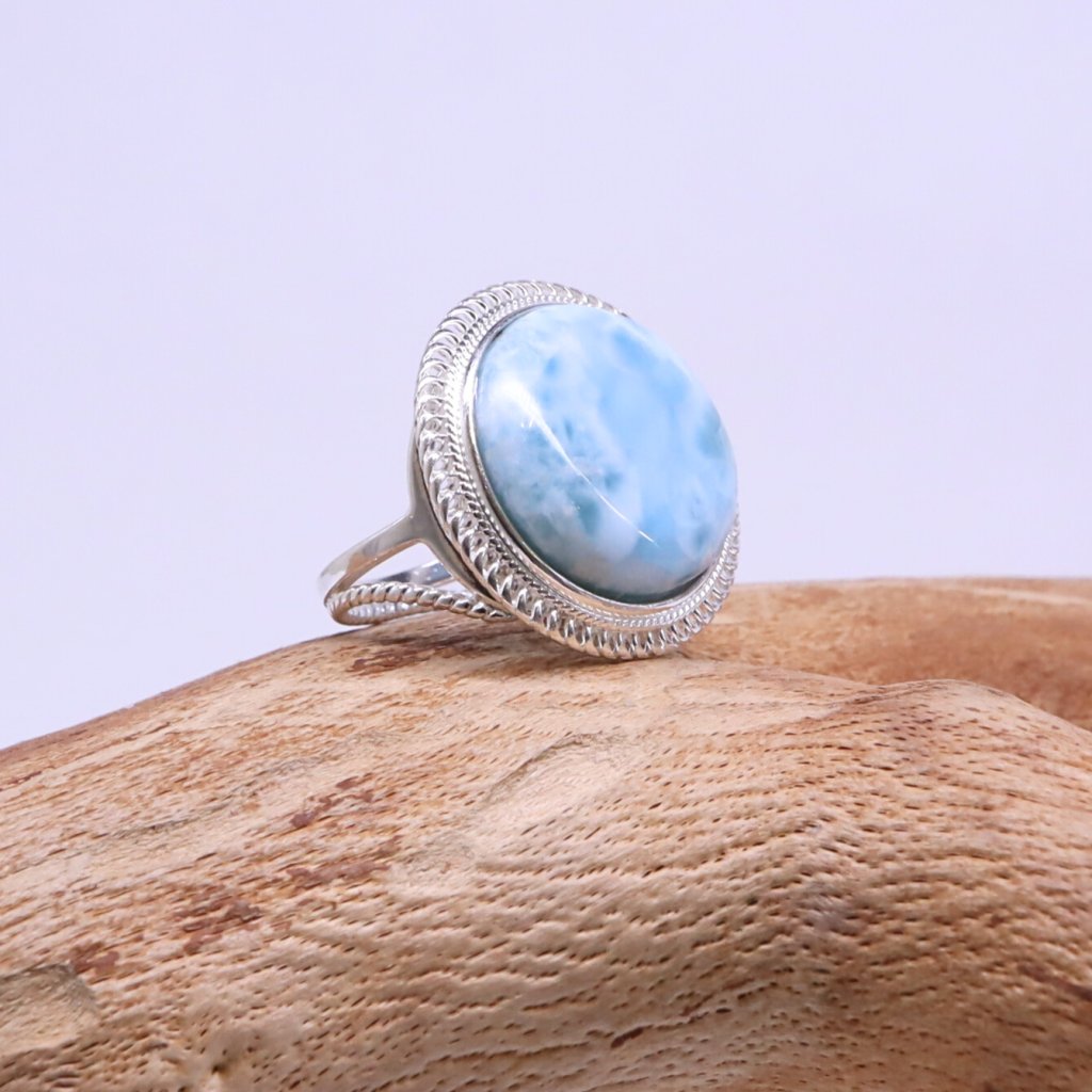 Stříbrný prsten s larimárem, kamenem klidu a moře, vás každý den přenesou na místo, kde se zastavil čas a vládne léto po celý rok. Na Vaší ruce se bude krásně vyjímat jako solitér.