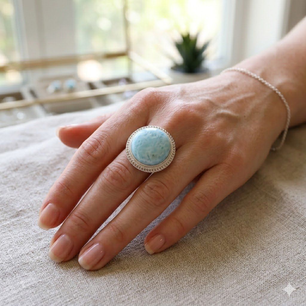 Stříbrný prsten s larimárem je vhodný pro každodenní nošení.
