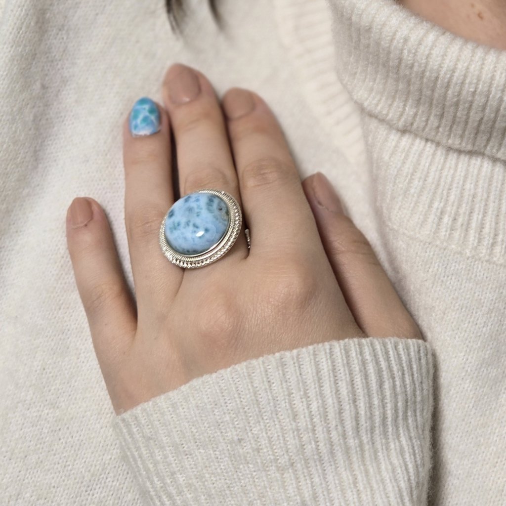 Stříbrný prsten s larimárem je vhodný pro každodenní nošení.