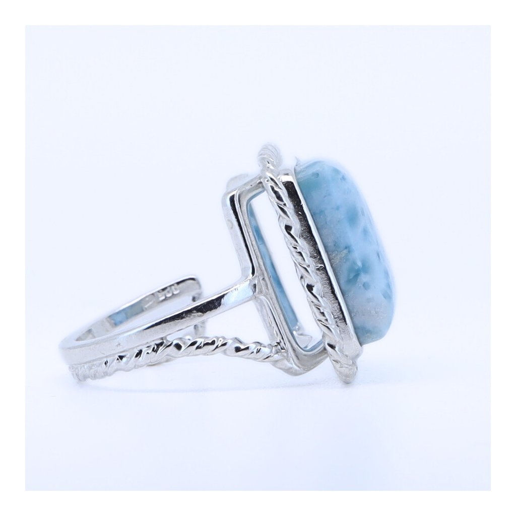 Stříbrný prsten s larimárem, kamenem klidu a moře, vás každý den přenesou na místo, kde se zastavil čas a vládne léto po celý rok. Na Vaší ruce se bude krásně vyjímat jako solitér.