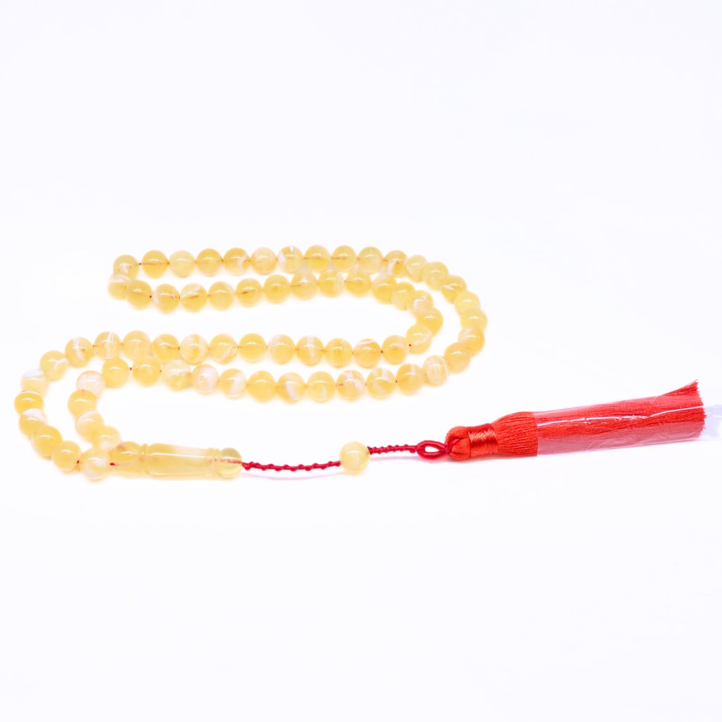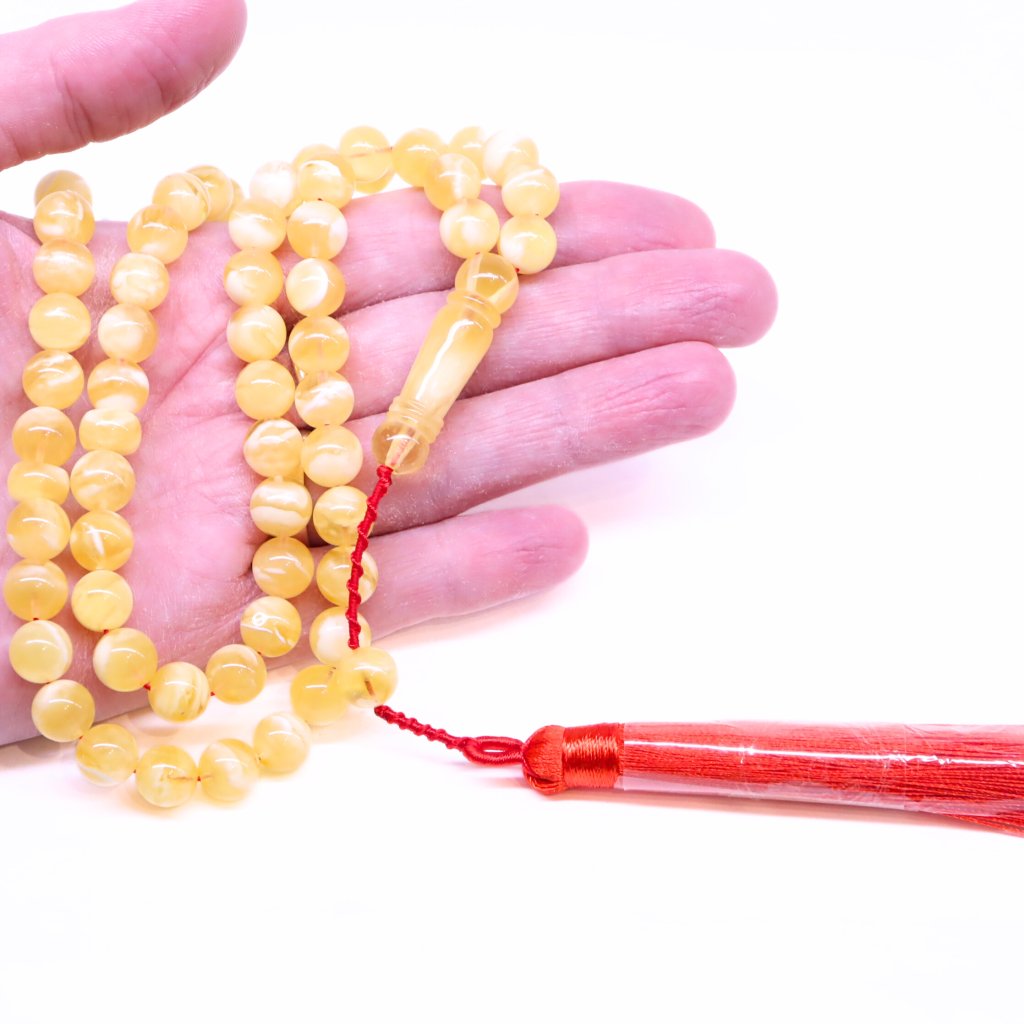 Růženec tesbih byl vybroušený z přírodního baltského jantaru.