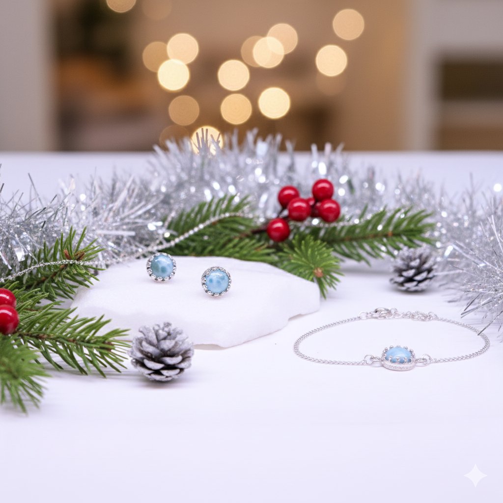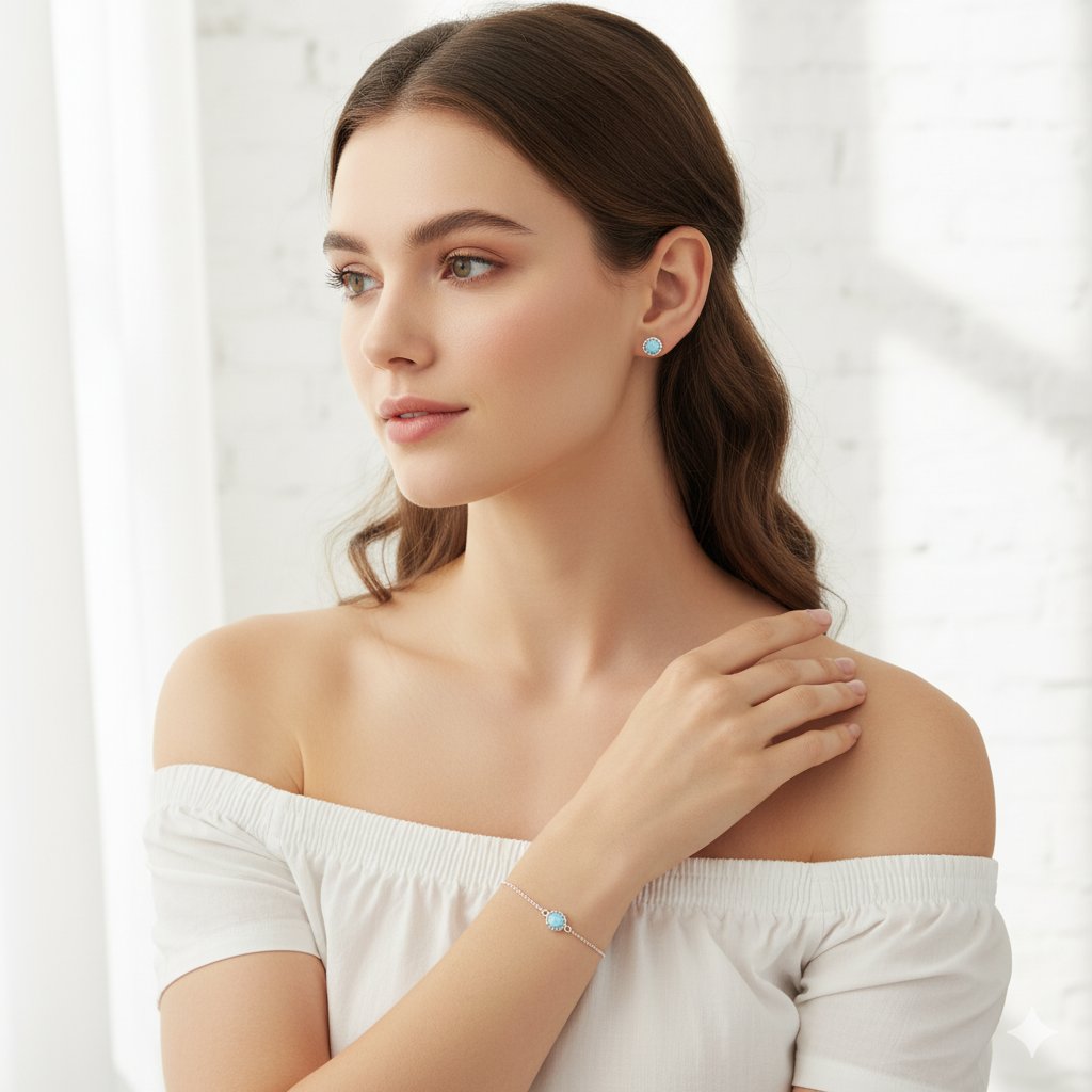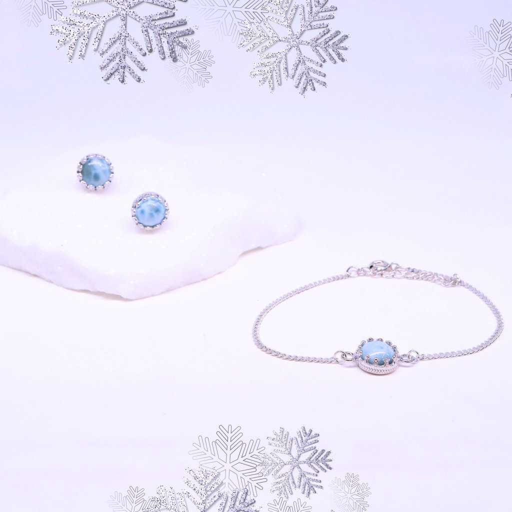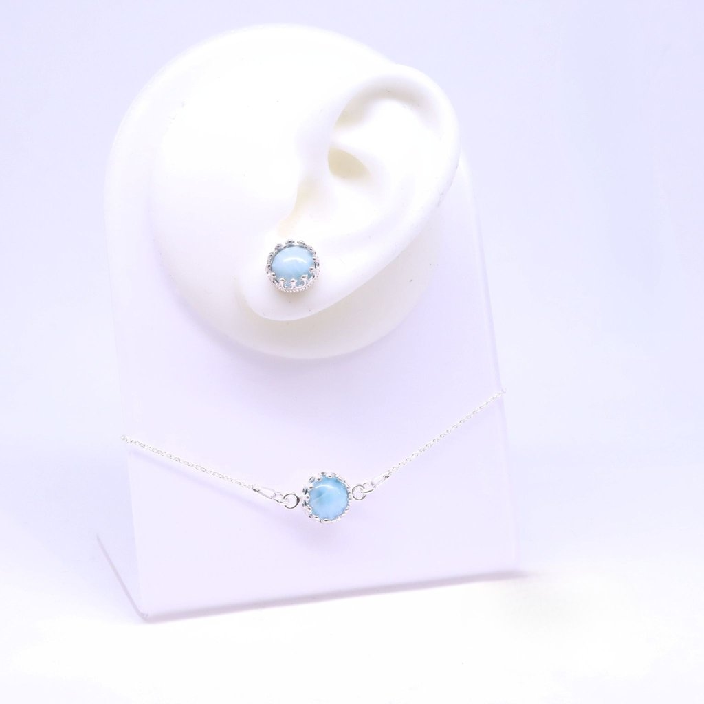 S tímto jemným stříbrným setem šperků s larimarem se budete cítit jako královna. Nebesky modrá barva larimaru vám bude připomínat pohodu letních dní u moře.