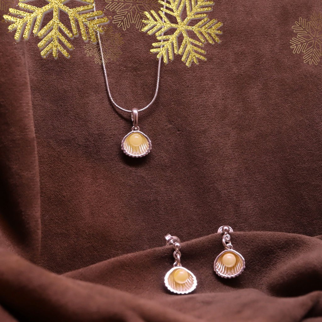 Stříbrný set šperků obsahuje náušnice a přívěsek s pravým baltským jantarem. Perlorodka symbolizuje skryté poklady, čistotu duše a ženskou sílu. Mušle představovala také symbol plodnosti a mateřství. Jantarová kulička zase dodává náušnicím hřejivou energii života, která podtrhne vaši přirozenou krásu.