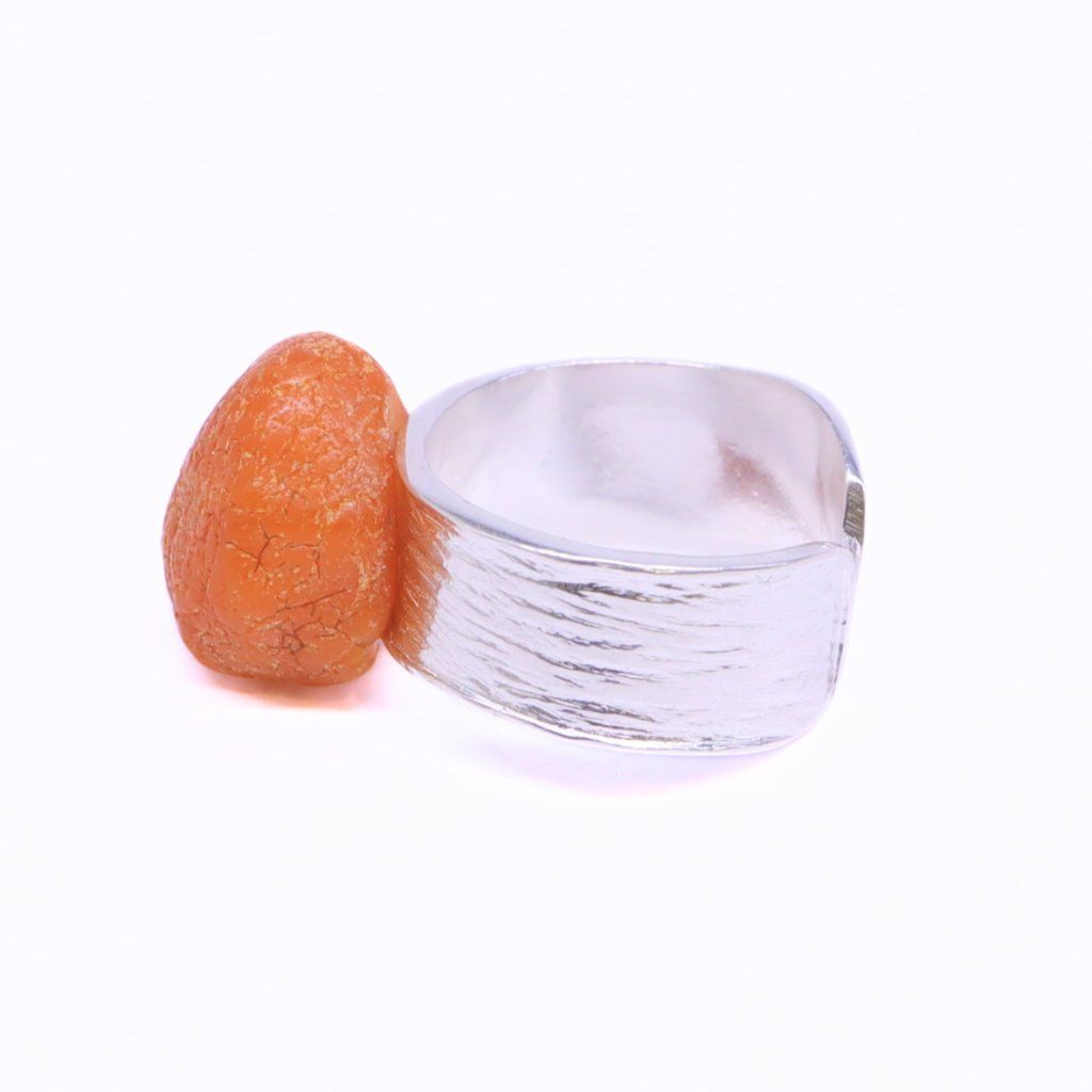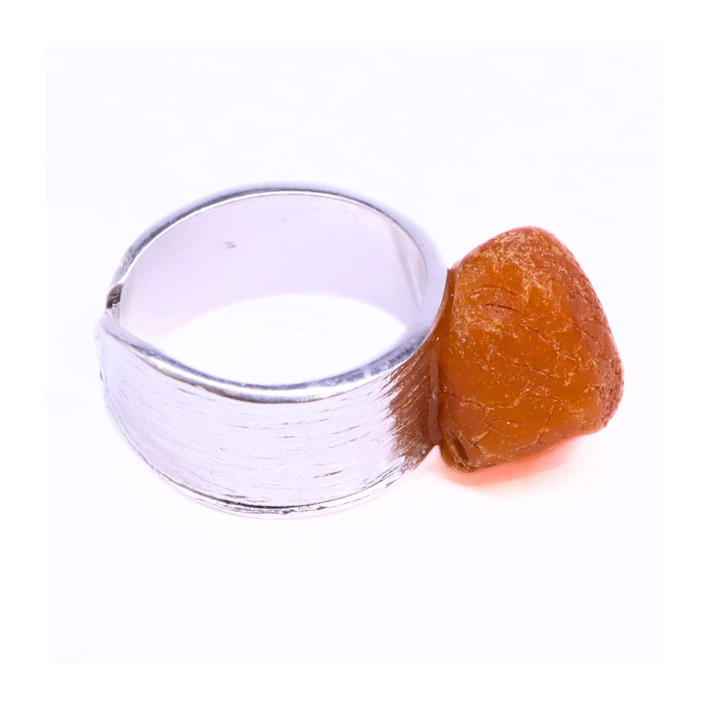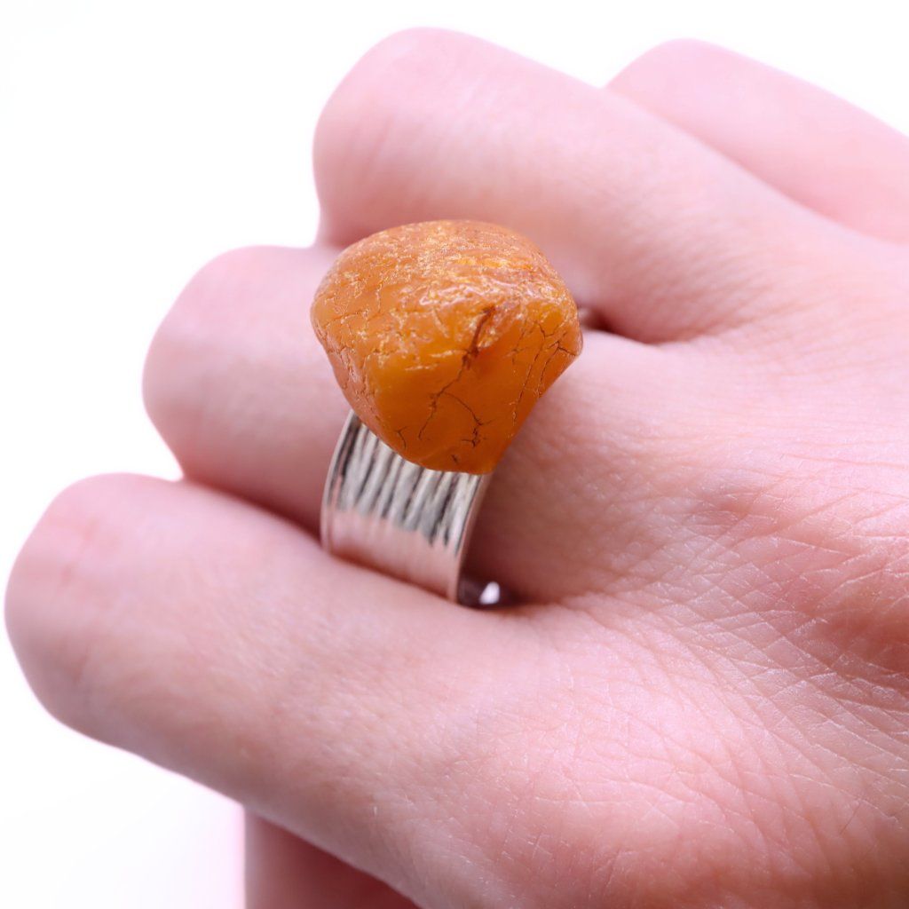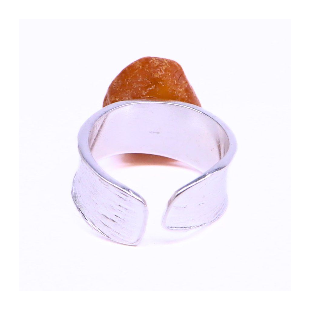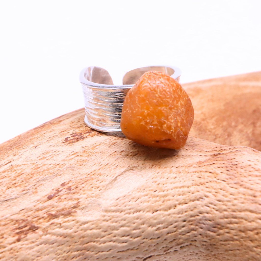Jantar ve své přírodní podobě kombinovaný se stříbrným prstenem je ideální šperk pro každou ženu.