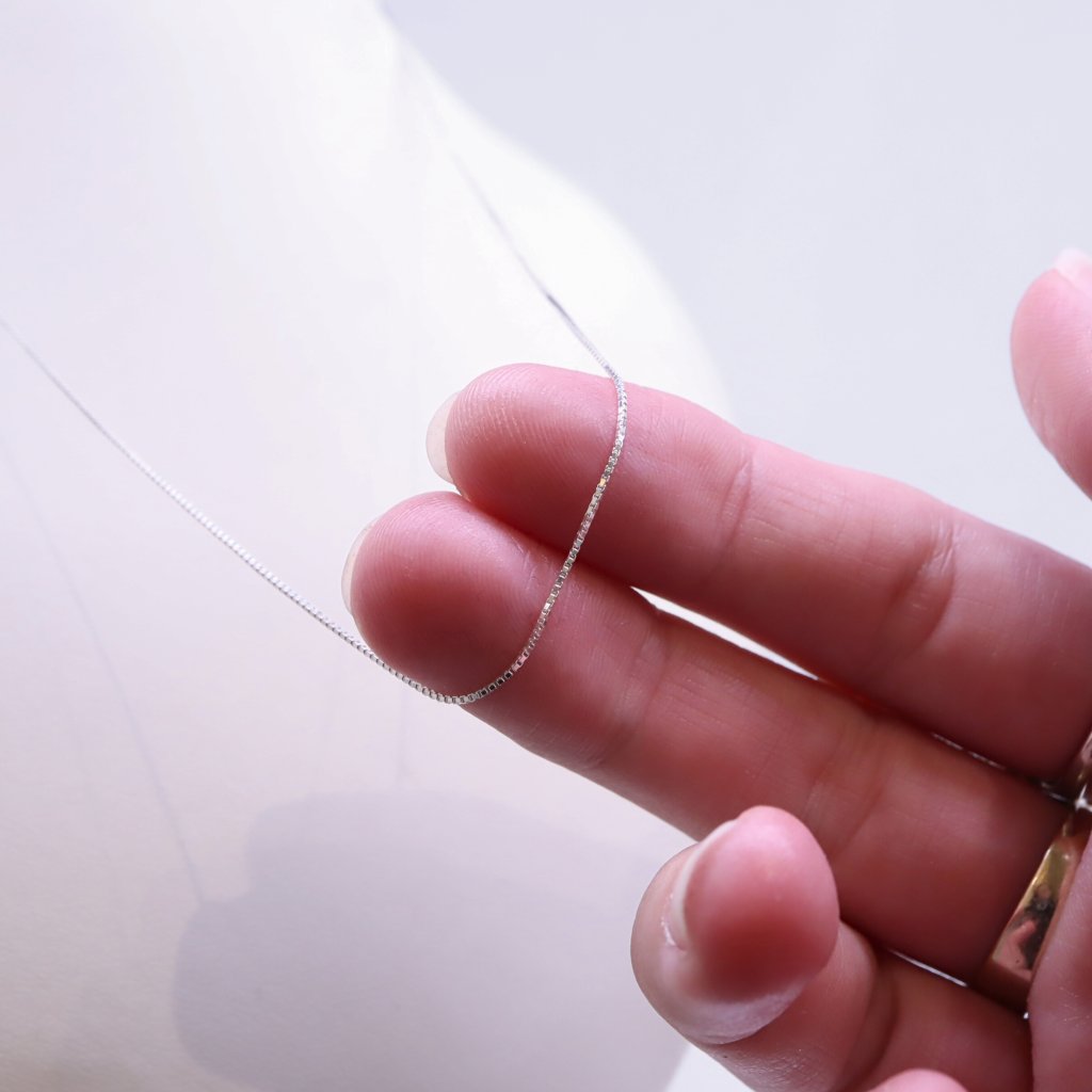 Tento jemný řetízek ze stříbra Ag 925/1000 působí minimalisticky. Hodí se k menším i středně velkým přívěskům.